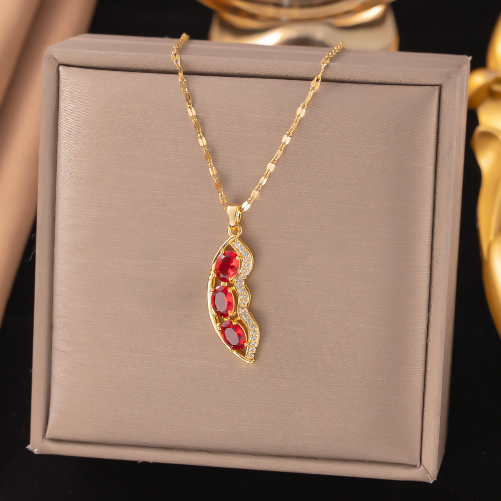 Color: 【8075】ruby pea necklace gold