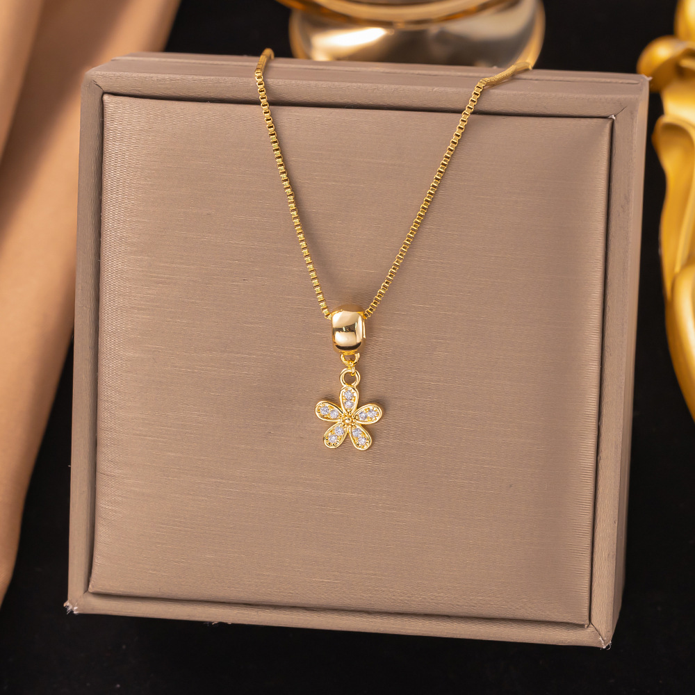 Color: 【8168】rose tulip necklace gold