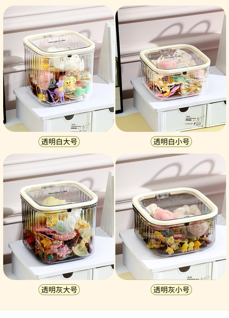 Elastic Cap Hair Accessories Hair Clip Storage Box Rubber Band Necklace Headwear Hair Clip Hair Band Hair Flower Storage Desktop Transparent Box