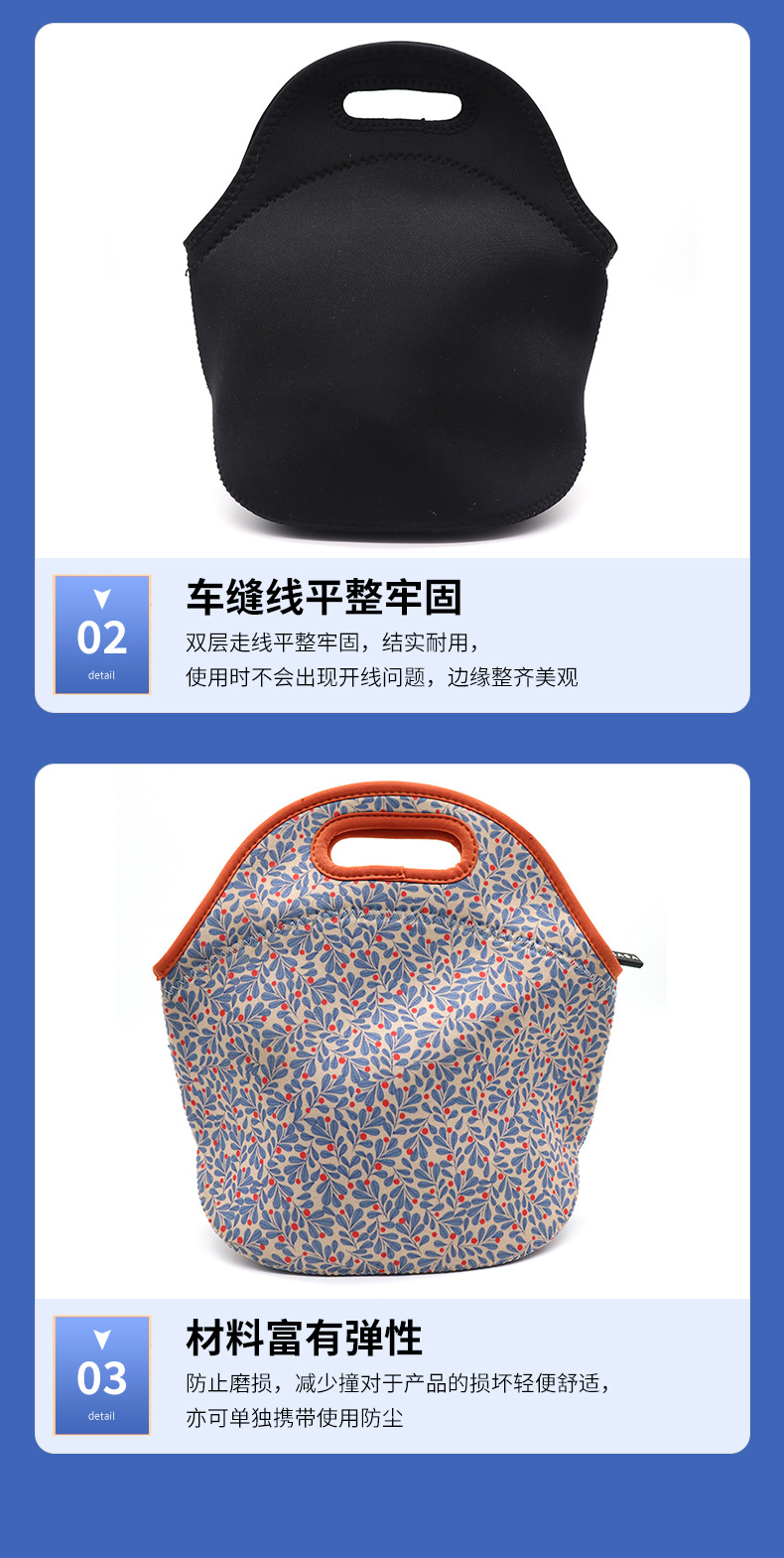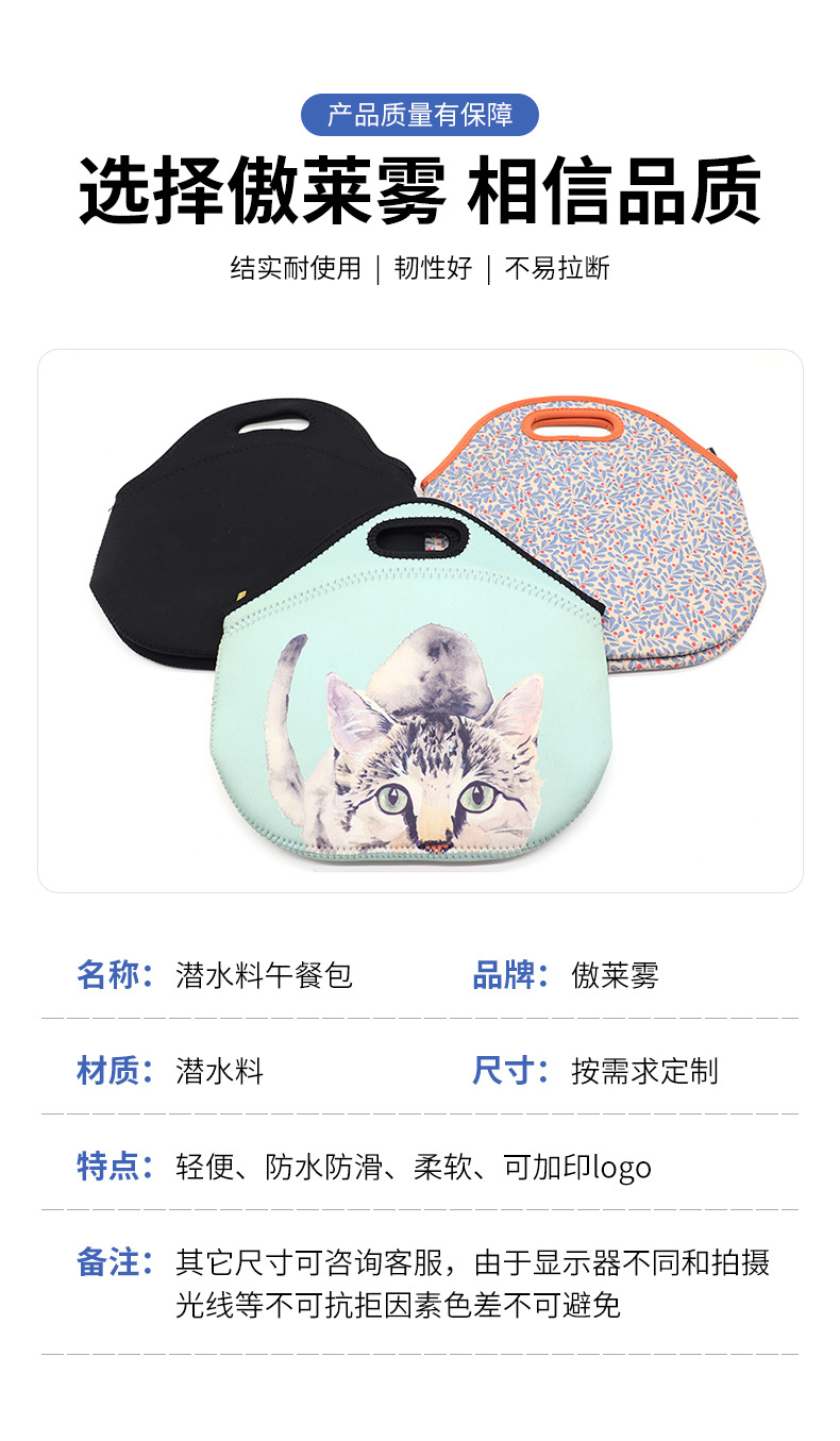 Factory wholesale diving material lunch bag outdoor picnic storage bag student portable portable lunch box bag insulation bag