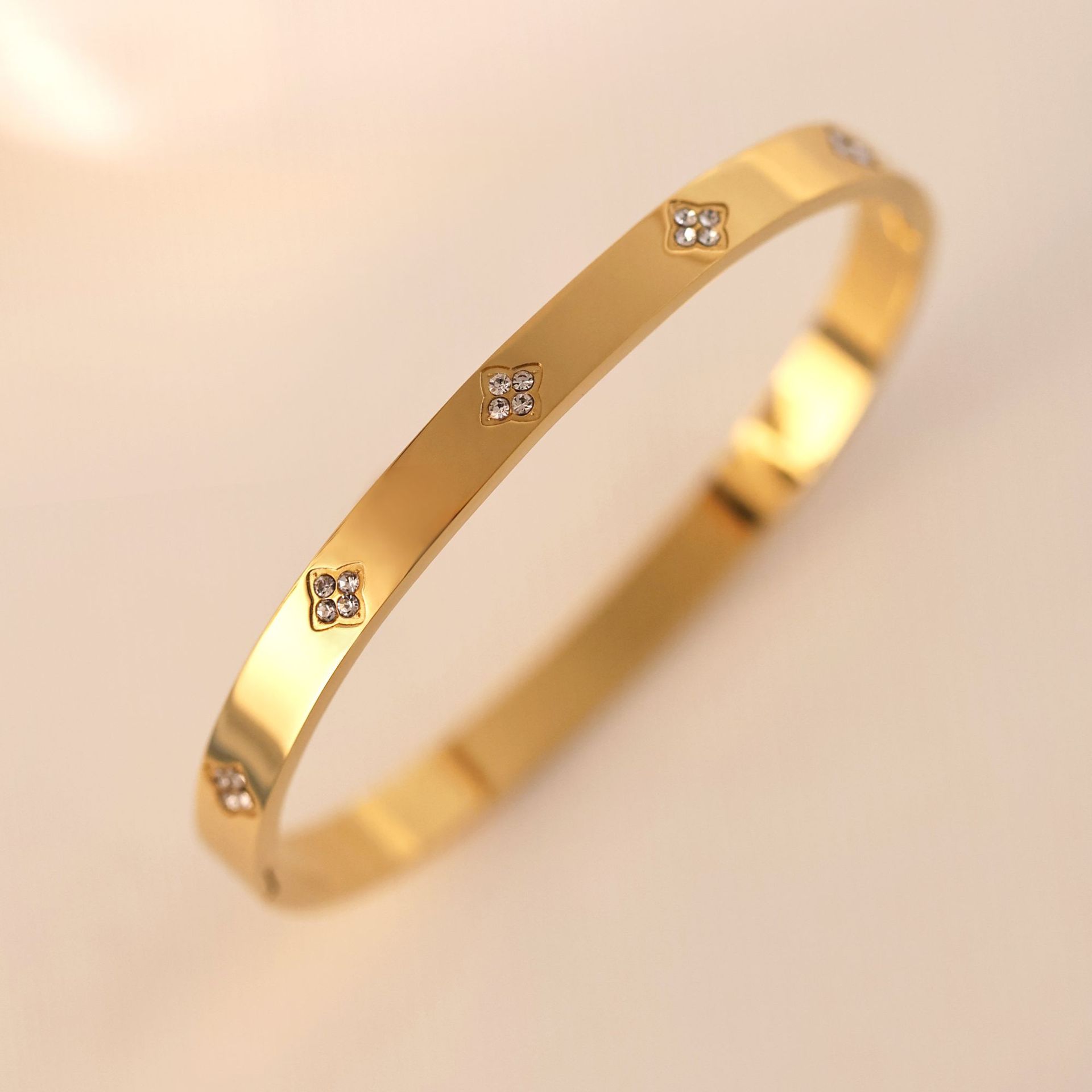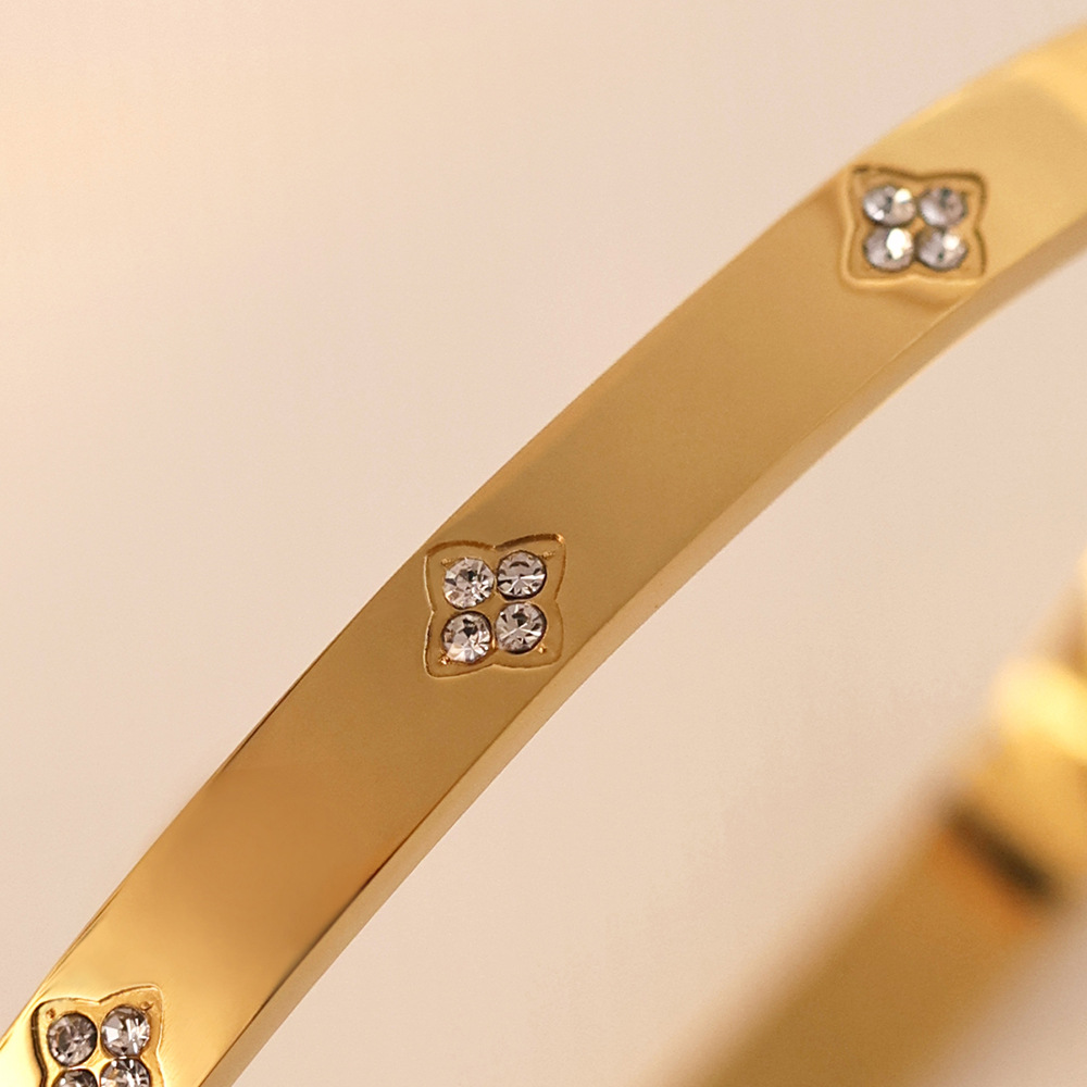 Cross-border European and American electroplating jewelry women's wholesale women's high-end non-fading jewelry four-leaf flower with diamond titanium steel bracelet