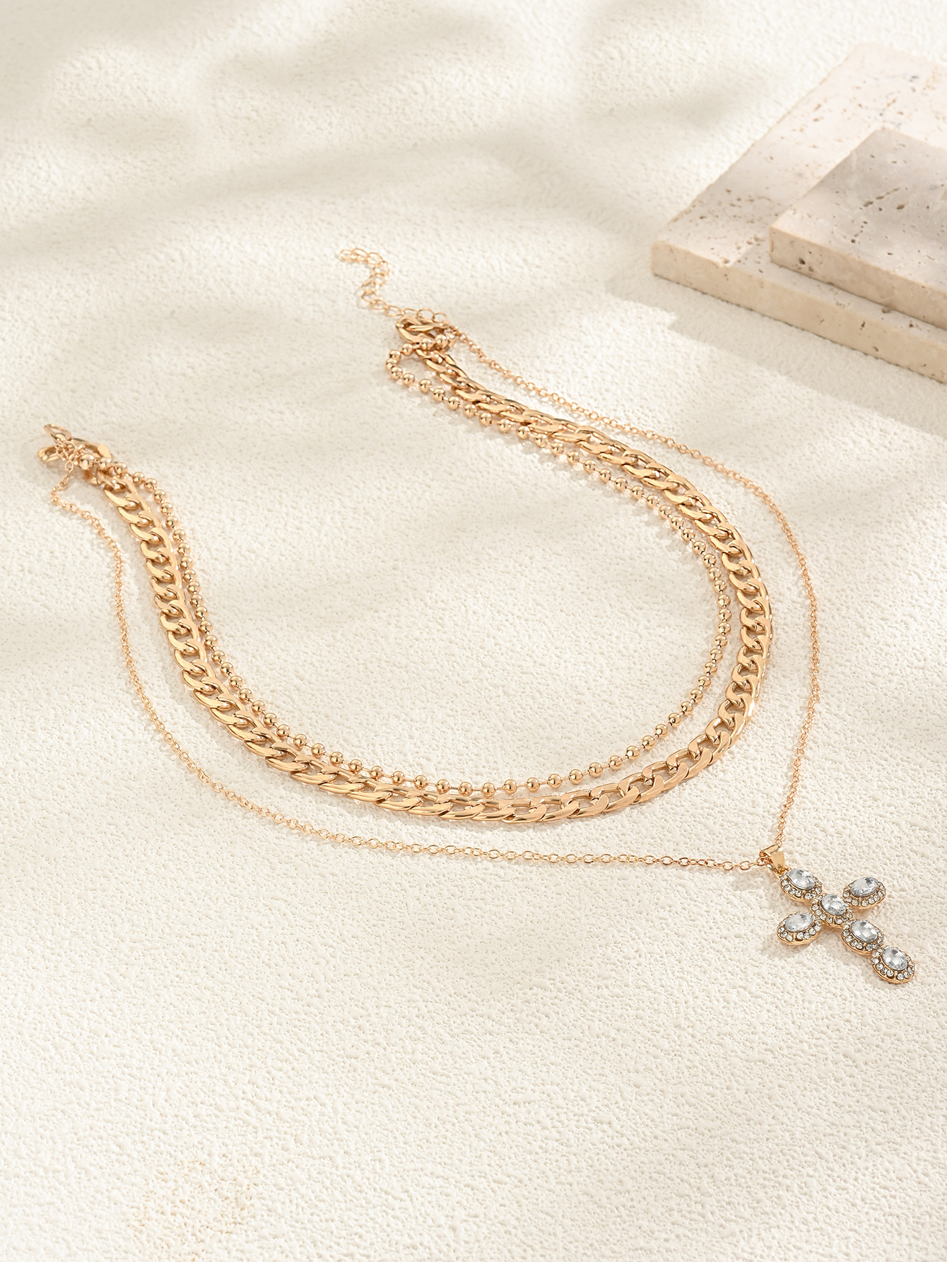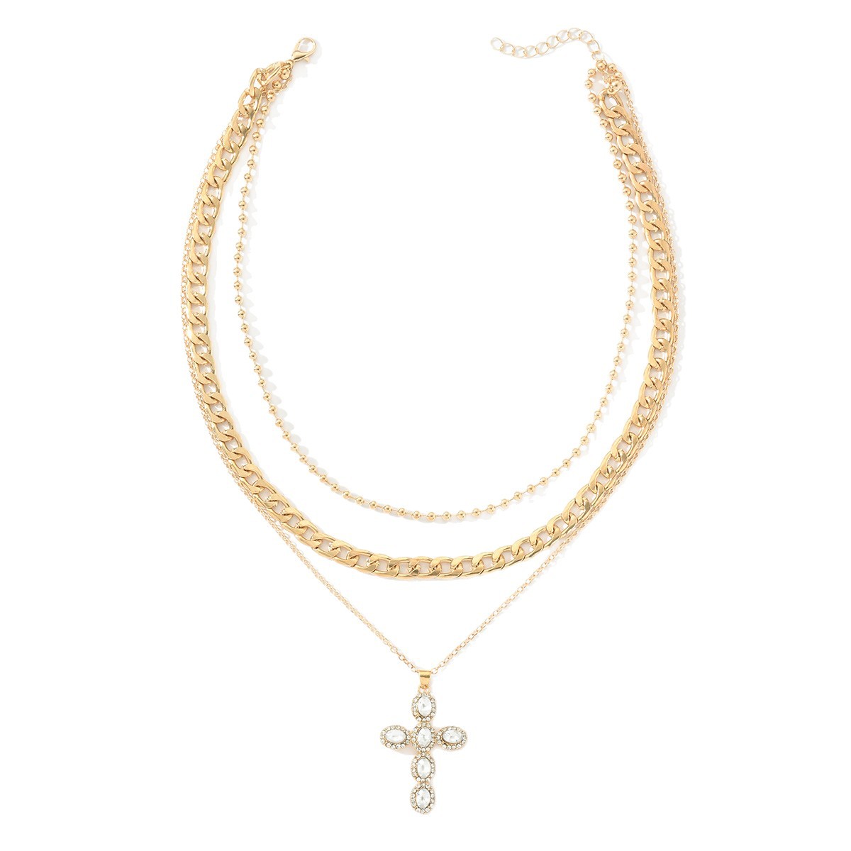 Stacked Cross Necklace Wholesale Cross-Border Trendy Light Luxury Niche Diamond Pendant Personalized High-End Sweater Chain