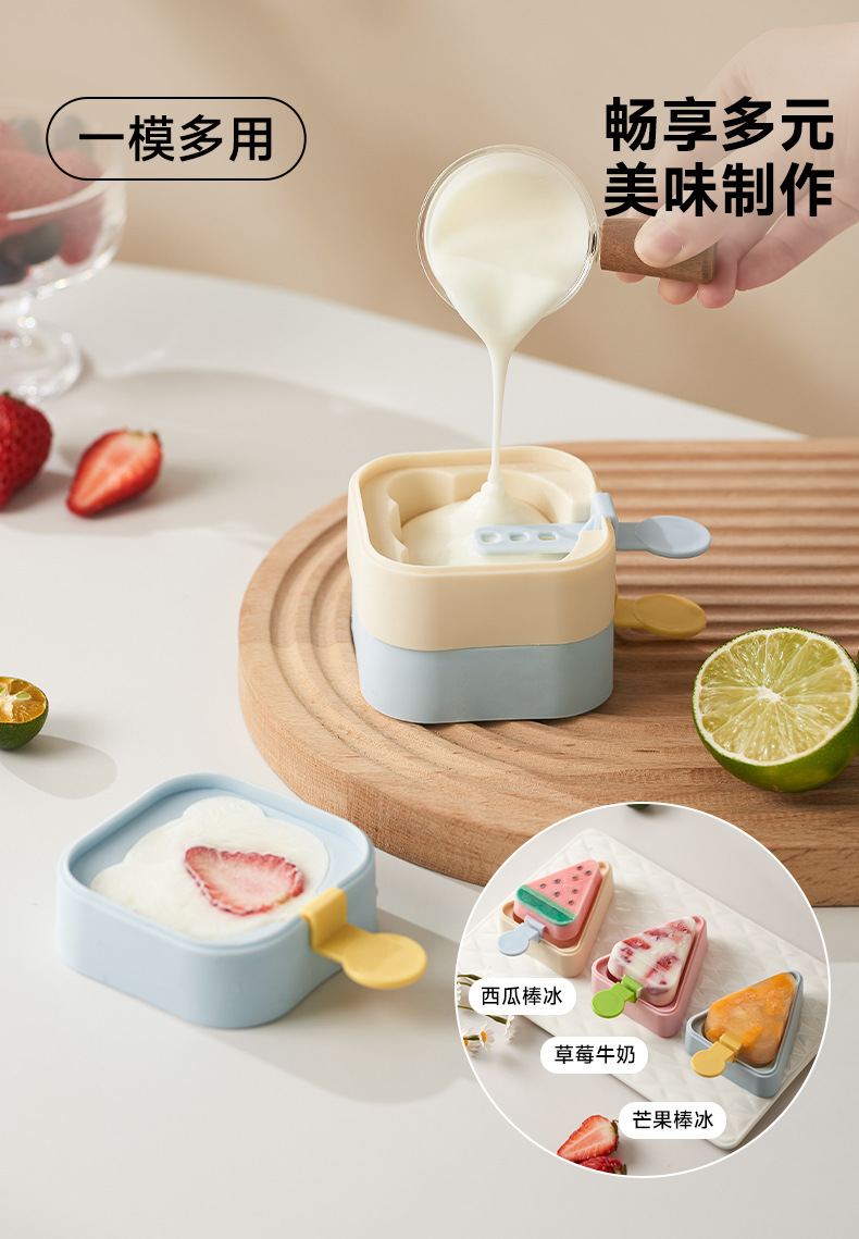 Ice Cream Mold Household Children's Food Grade Popsicle Ice Cream Ice Cream Single Patch Homemade DIY Silicone Mold with Cover