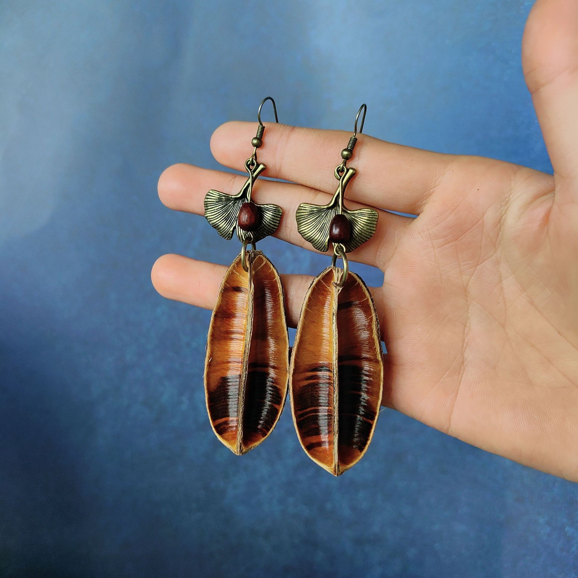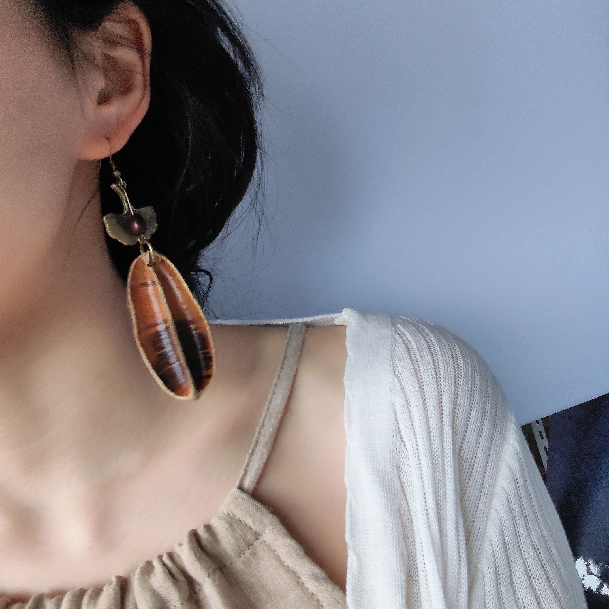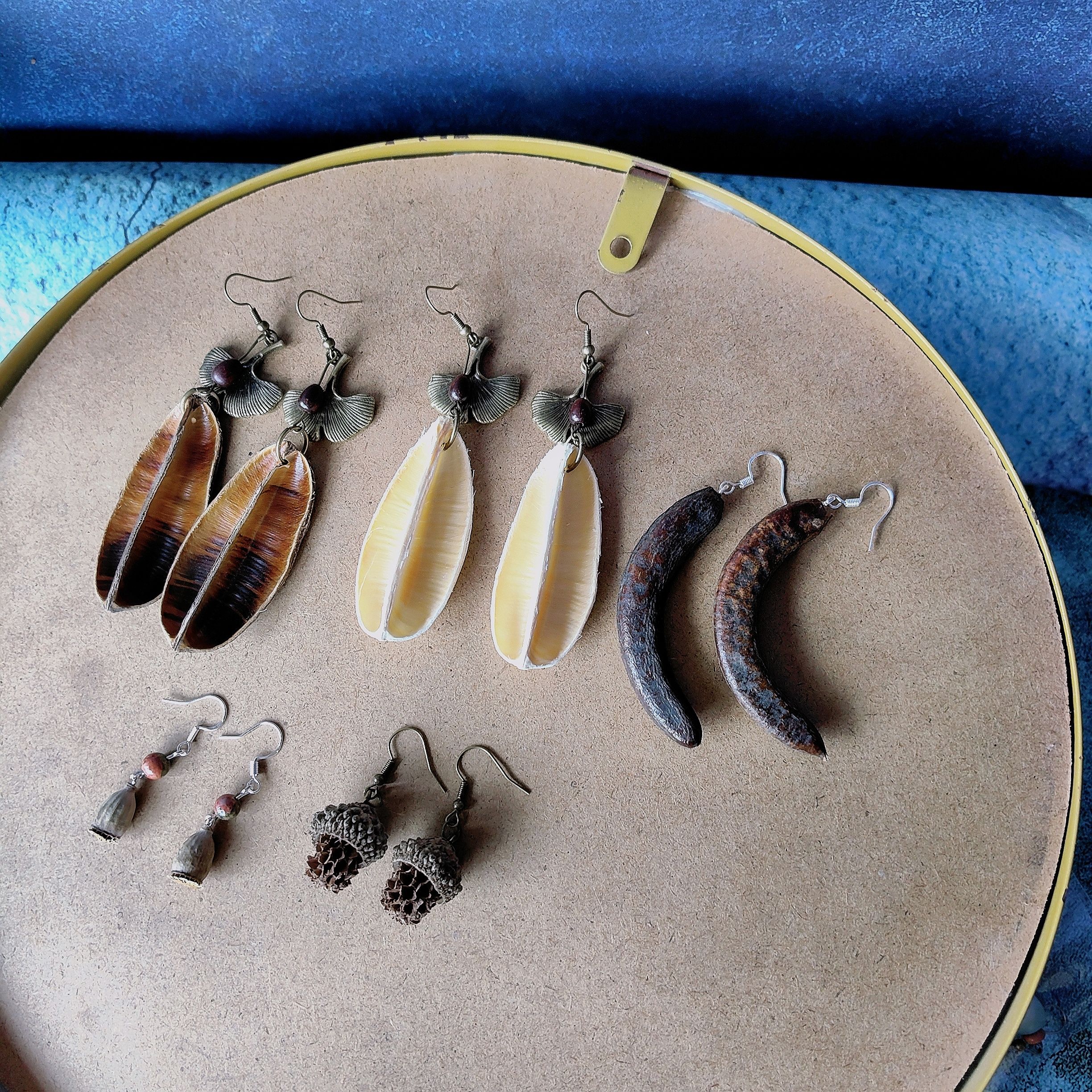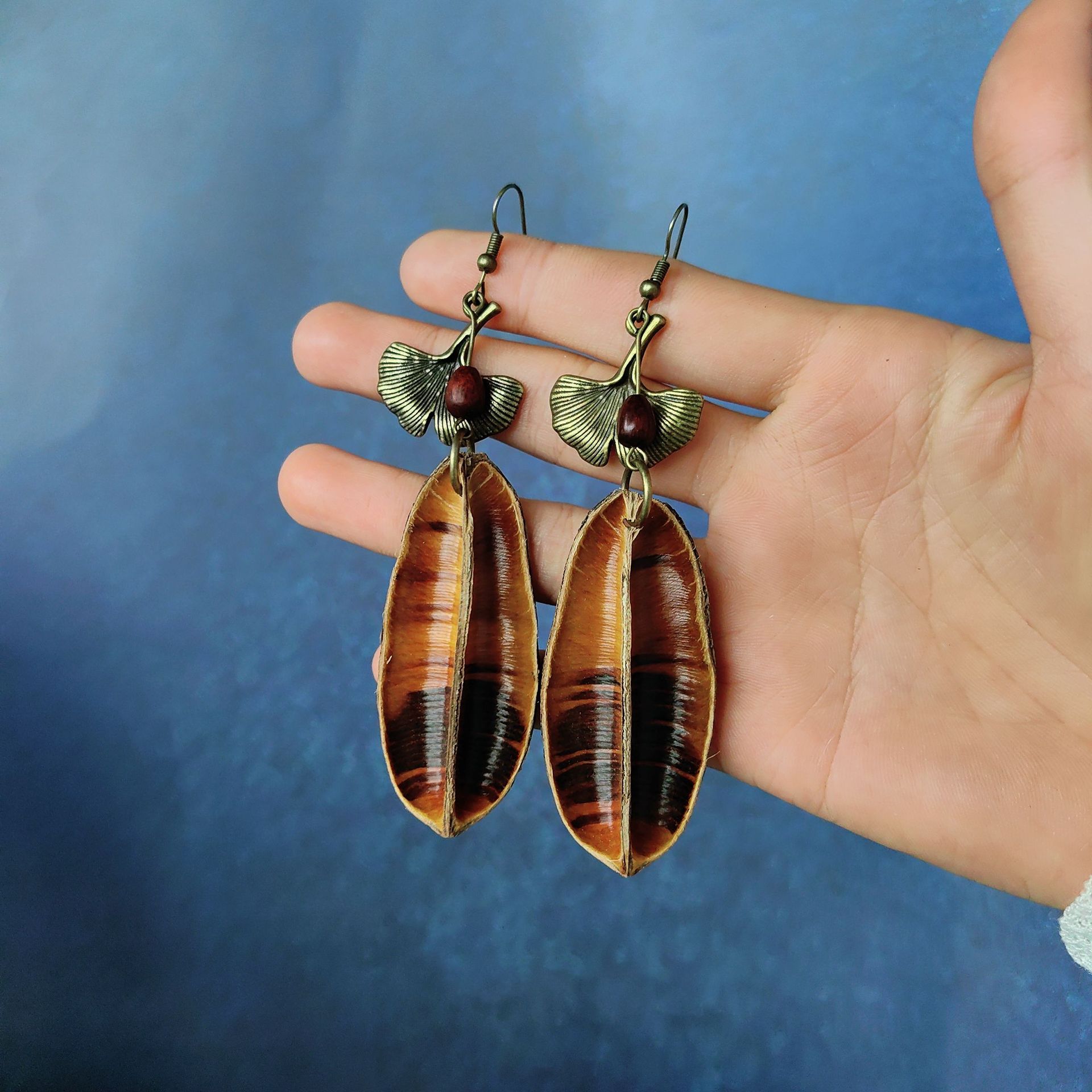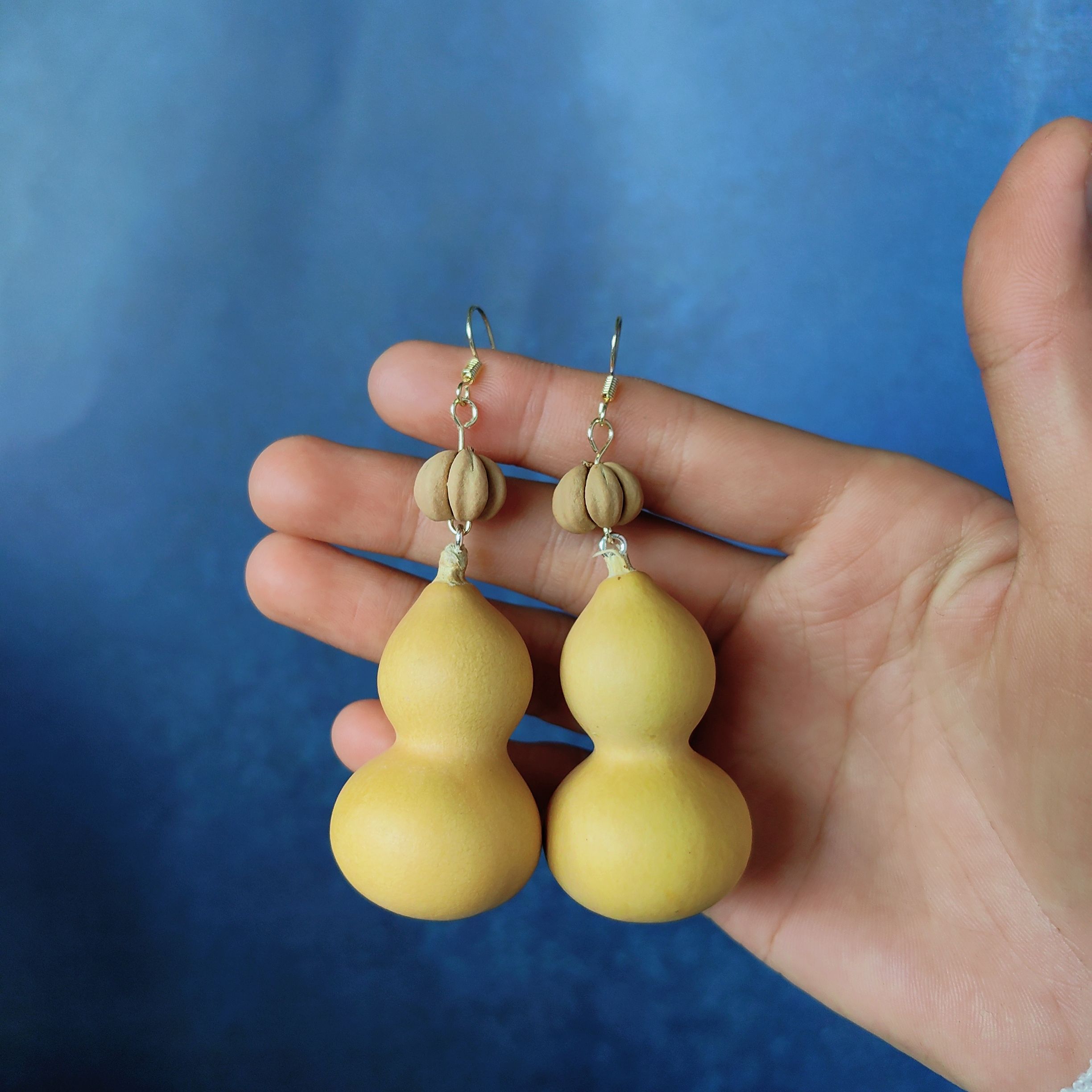 Original Design Natural Gourd Earrings Pod Small Fruit Shell Real Gourd Ethnic Style Creative Ear Drop Earrings Accessories for Women