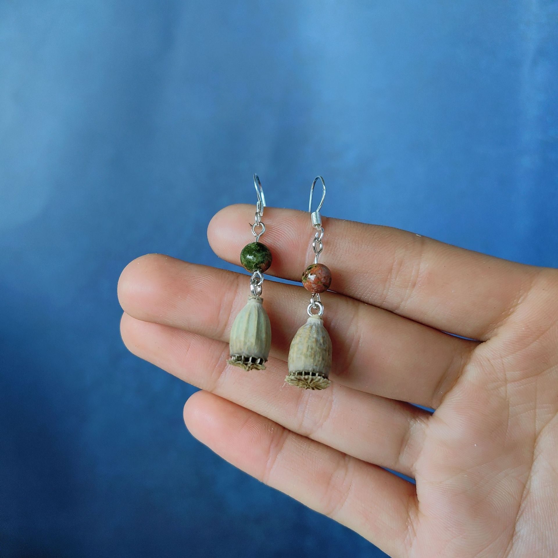 Color: Poppy + natural flower green stone with beads, about 4.5cm