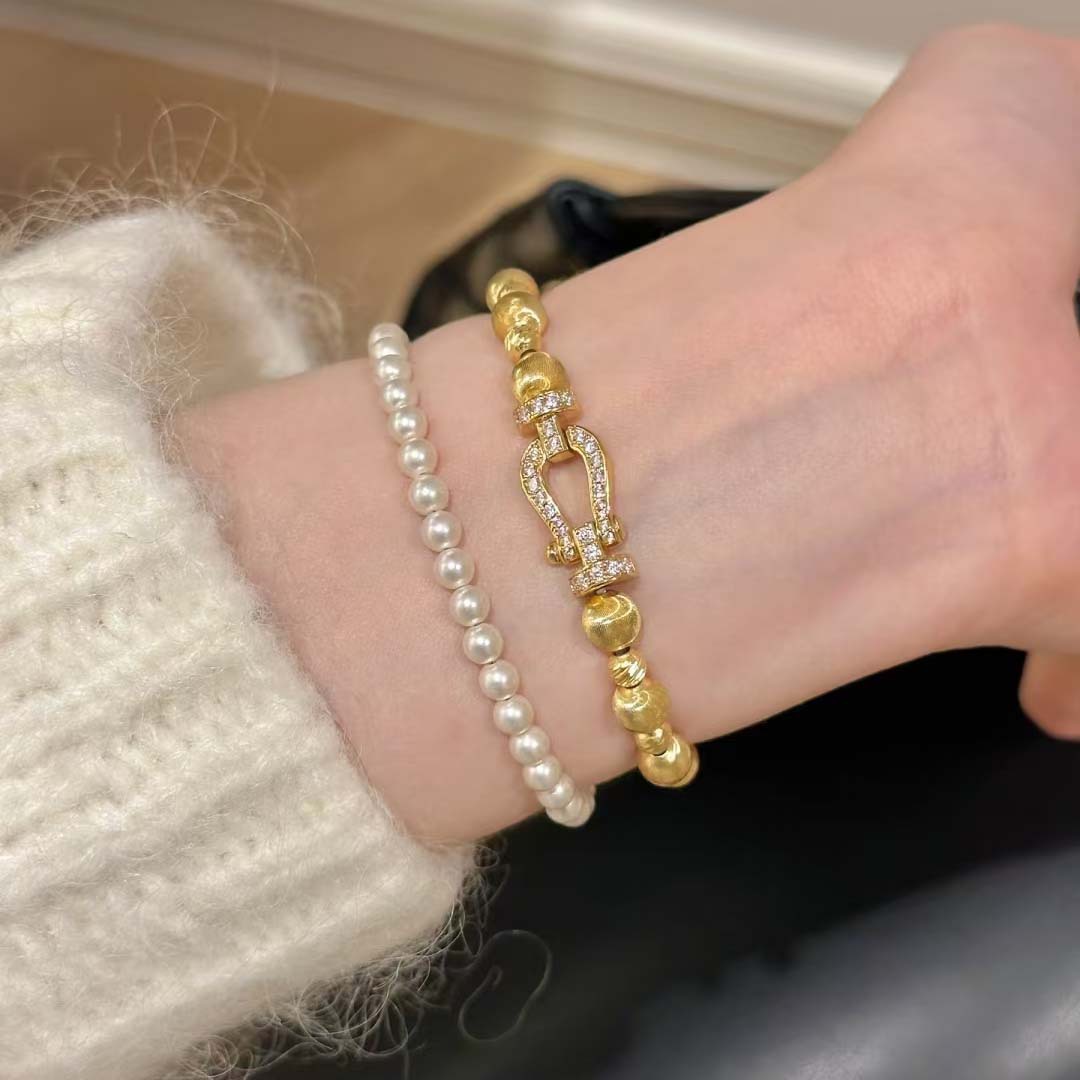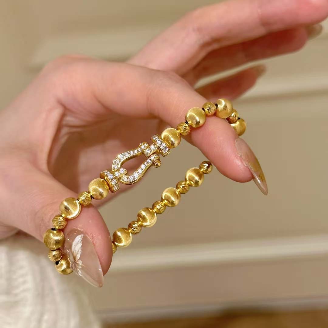 Little Red Book Light Luxury Middle Ancient Horseshoe Buckle Cat's Eye Bracelet Gold-plated Women's Retro Fashion Exquisite High-end Elegant Jewelry