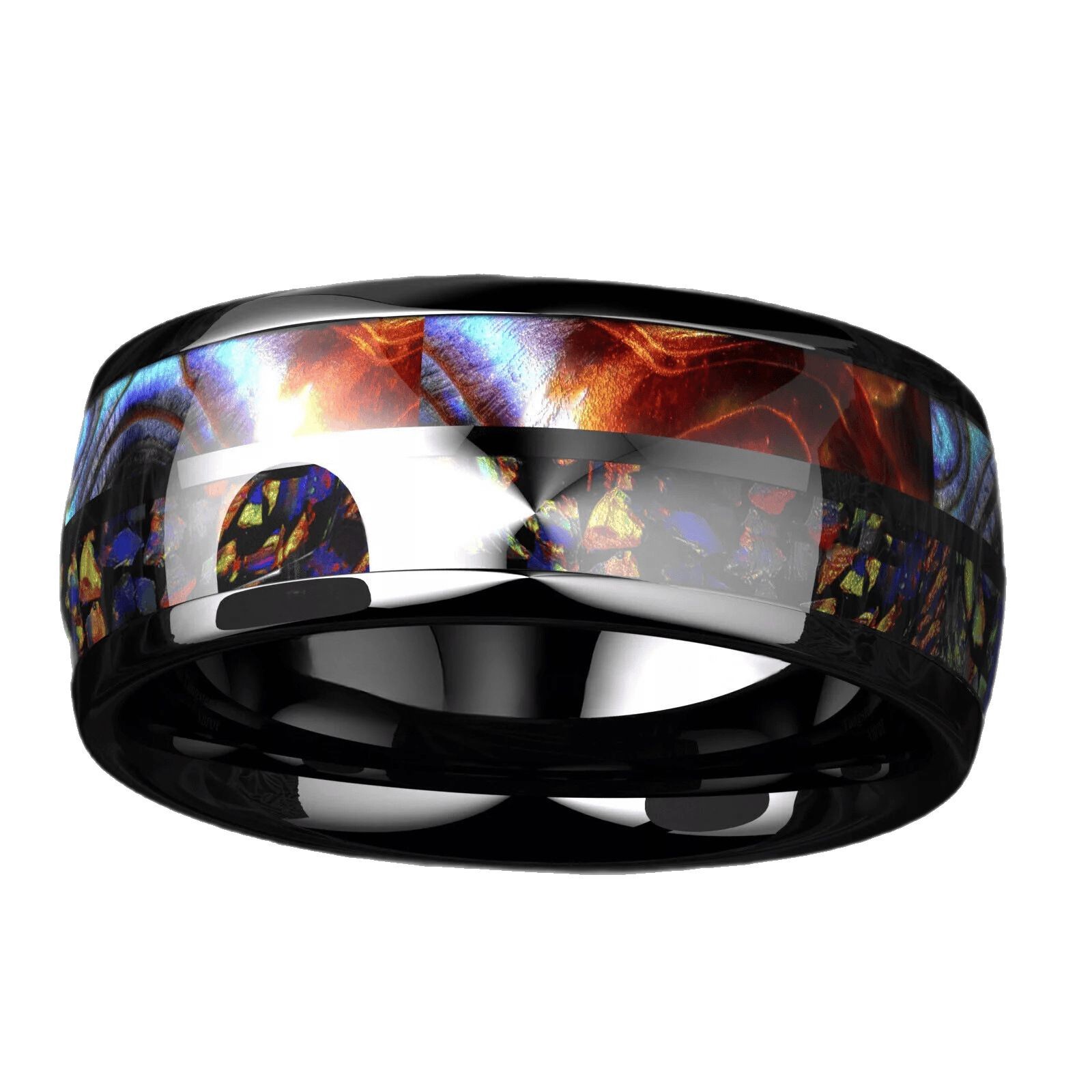 Color: Black hawaiian opal stainless steel ring