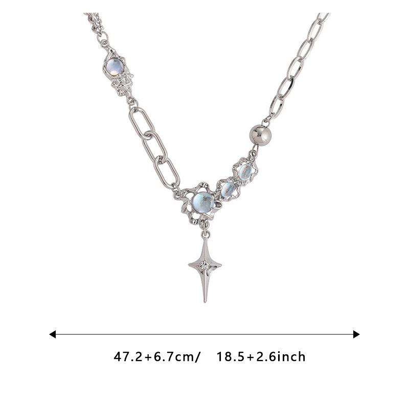 Moonstone Cross Necklace Men's Starburst New Trendyy High-End Women's Silver Versatile Niche Cold Style Accessories Jewelry