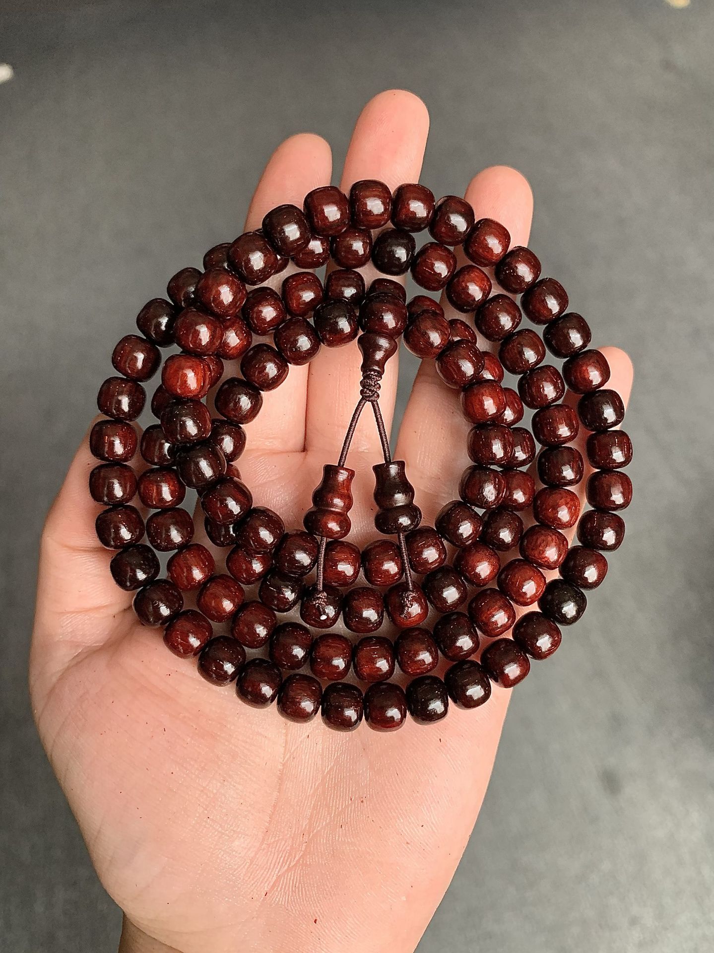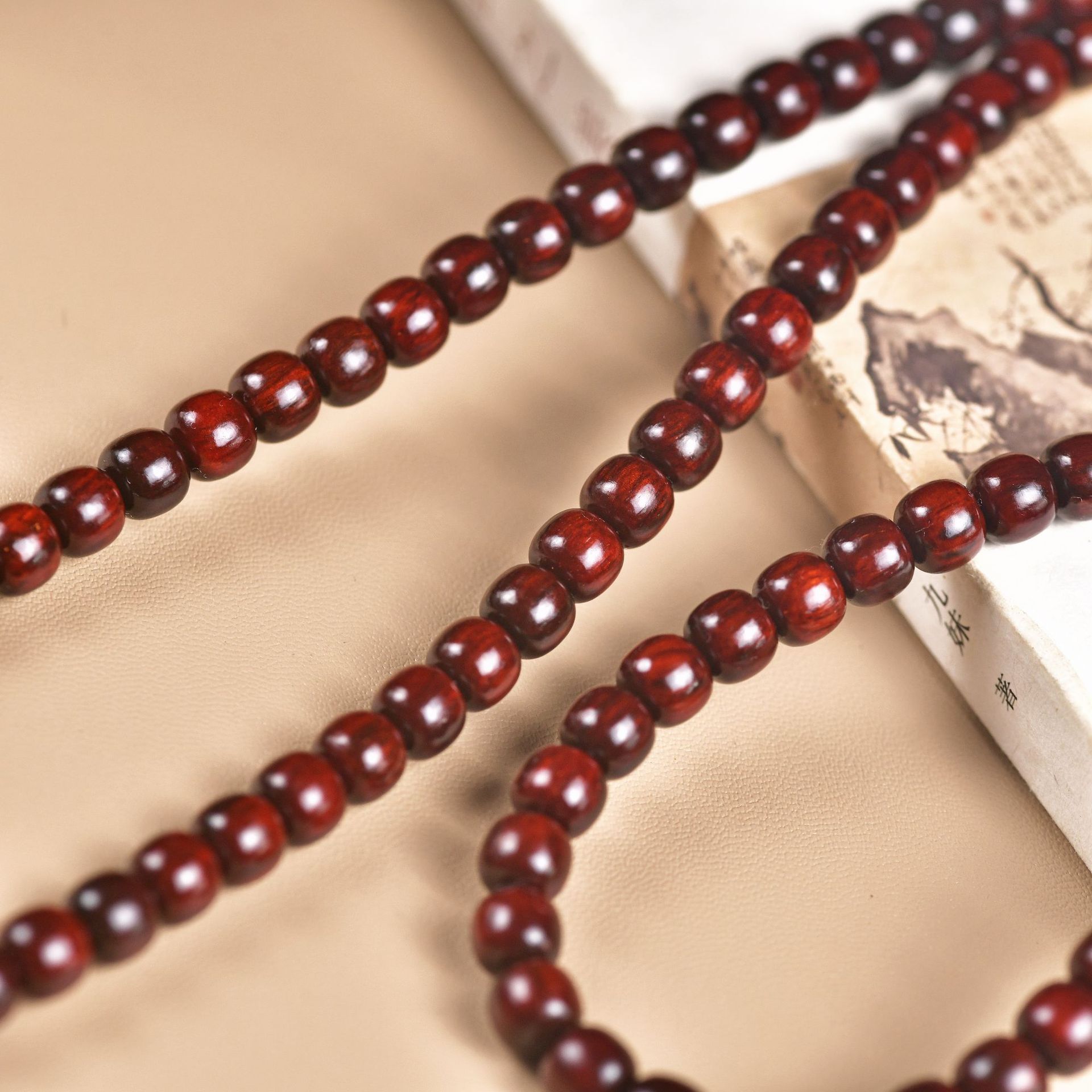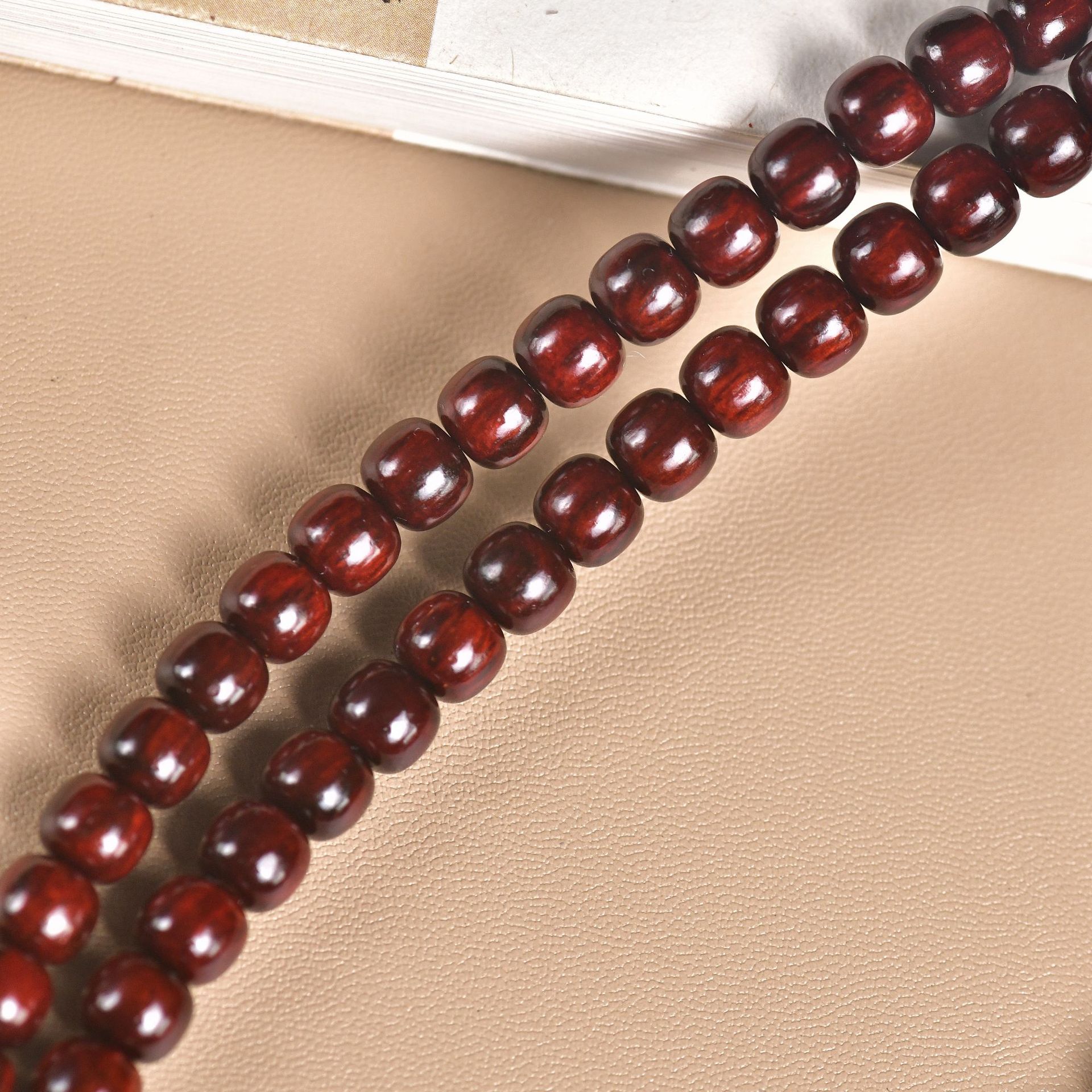 Color: Indian small leaf rosewood old type beads 7x8mm 108 old material glass bottom