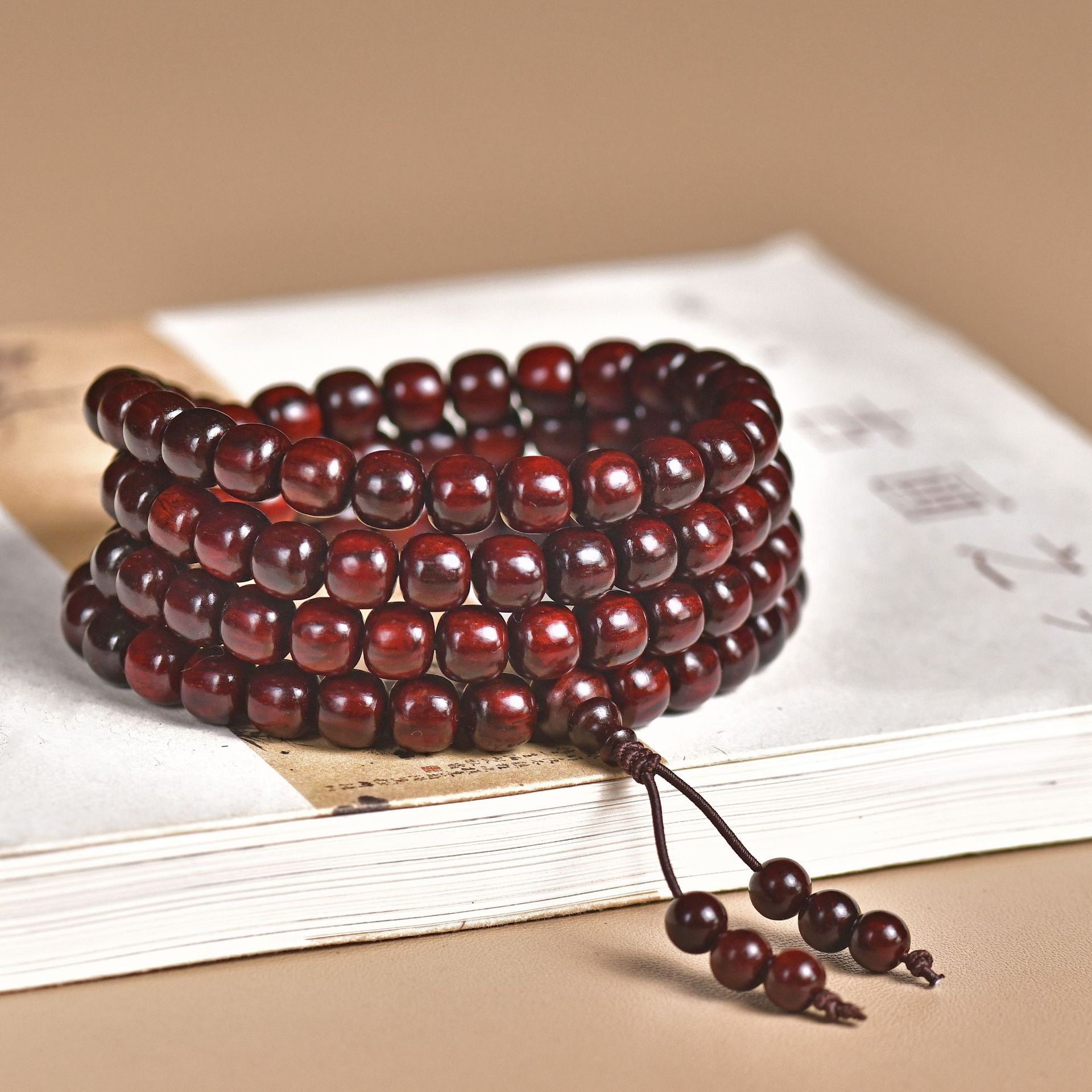 Color: Indian small leaf rosewood old type beads 6x7mm 108 gold stars