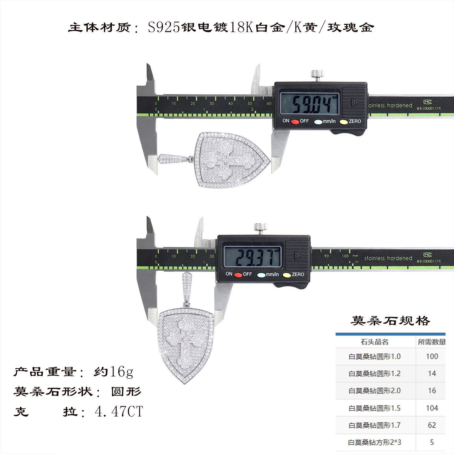 Color: S925 silver (full moissanite) 305-piece pendant