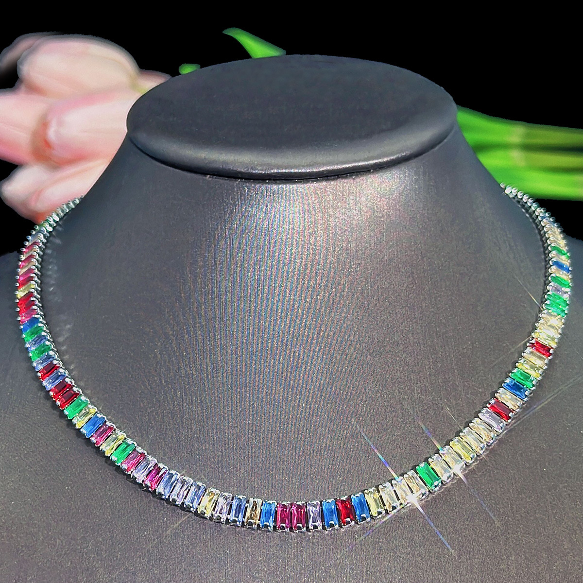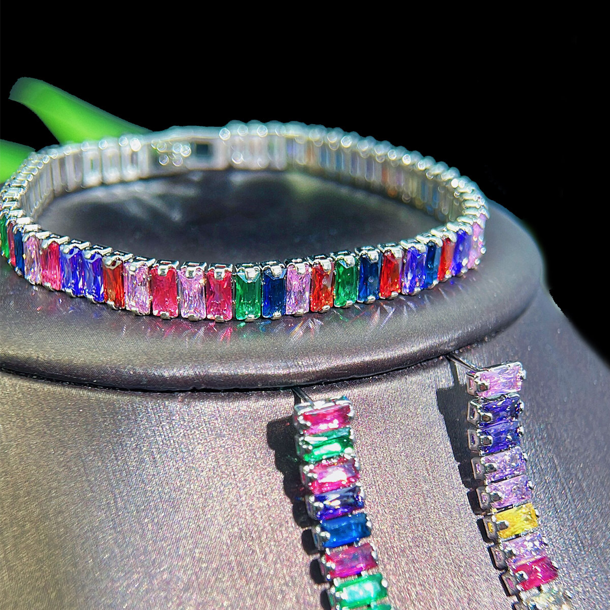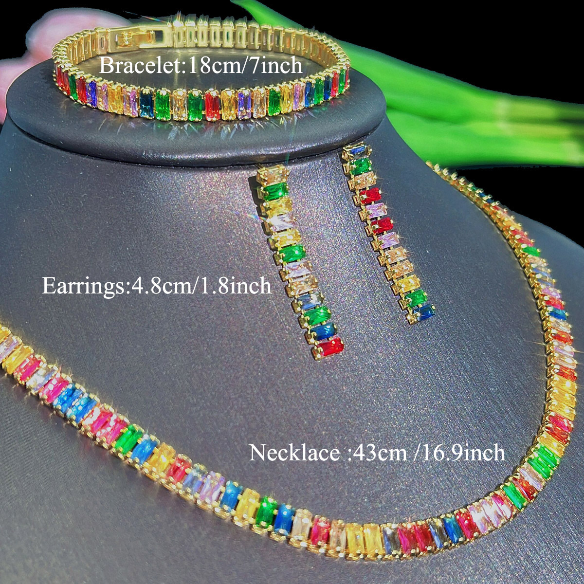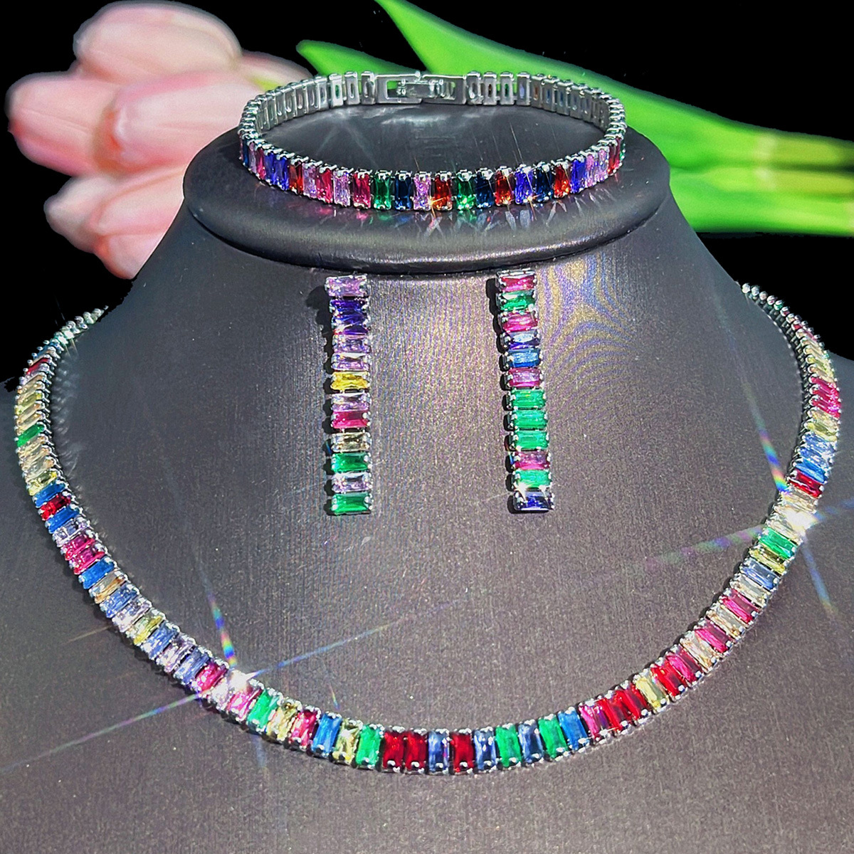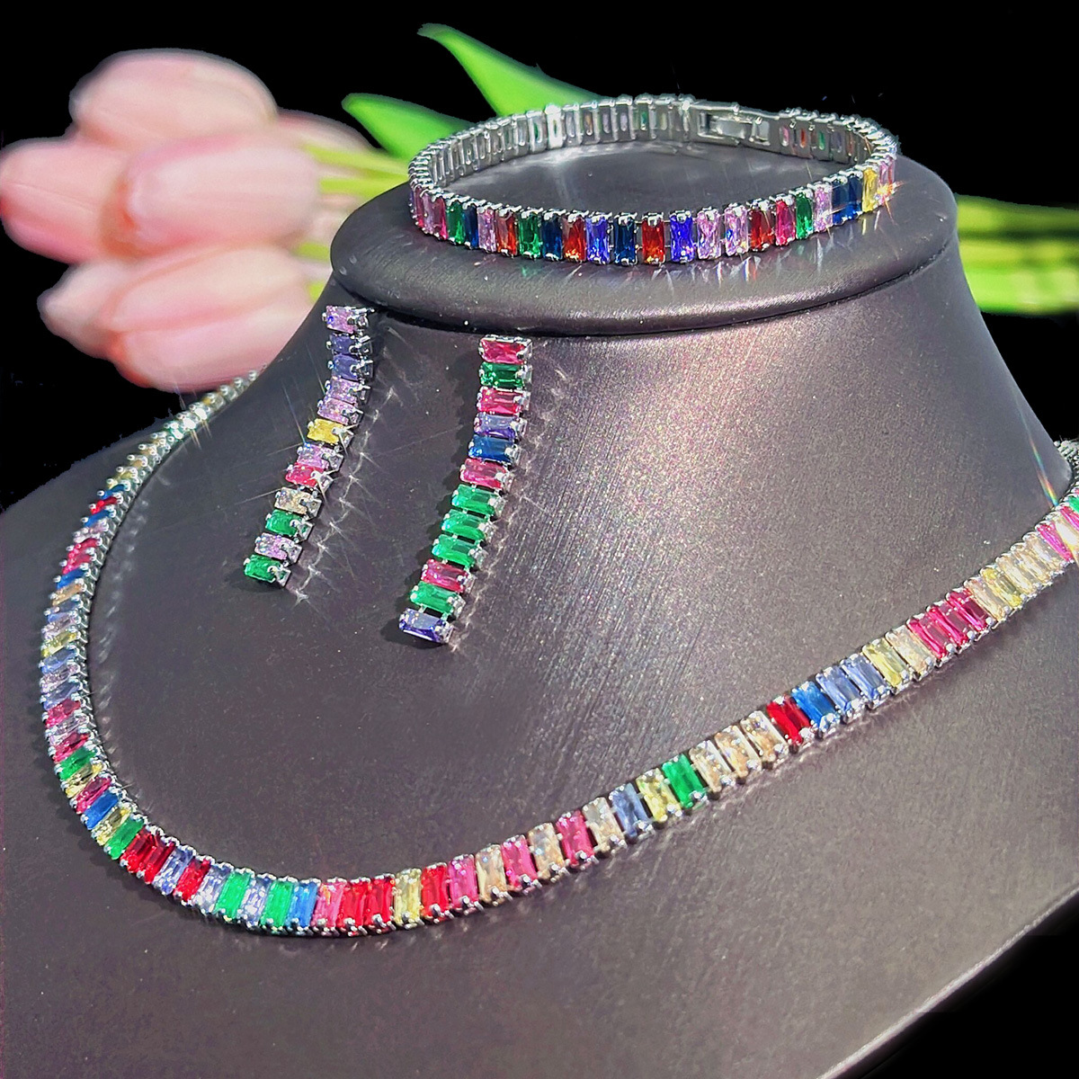 Light Luxury High-End Dopamine Colorful Zircon Necklace Niche Trendy Popular Bracelet Temperament European and American Set of Accessories