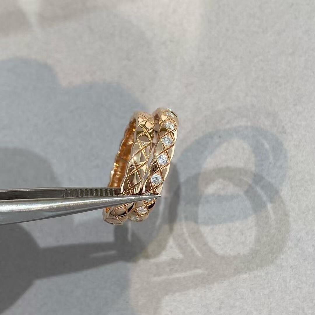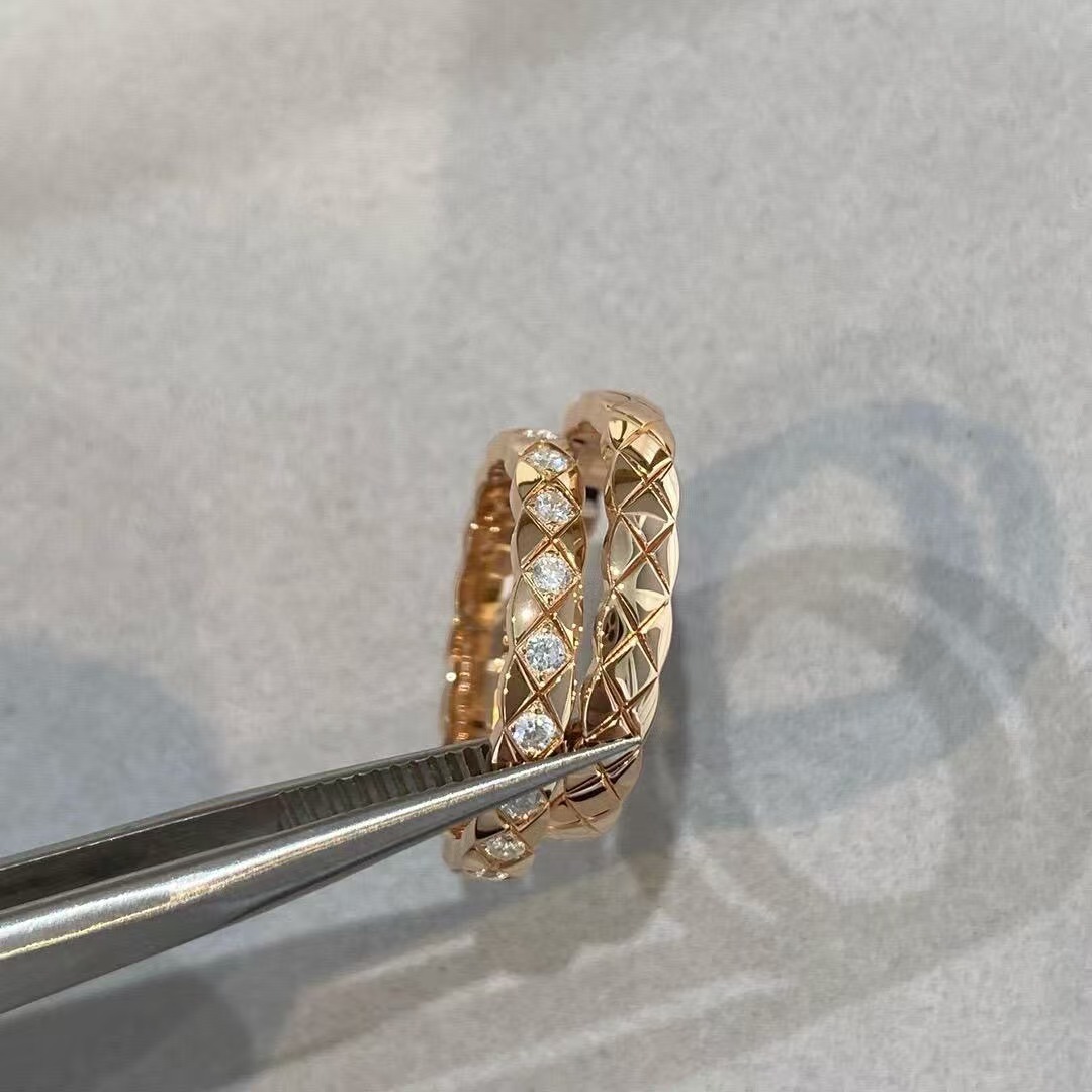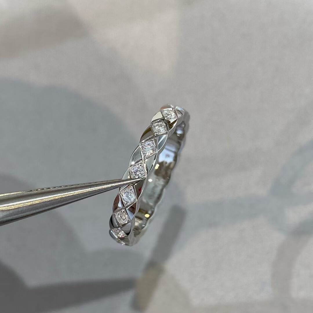 Rose Gold High Version Coco Diamond Pattern Silver Ring Women's White Copper Plated V Gold Seiko Narrow Ring Overlapping Couple's Ring