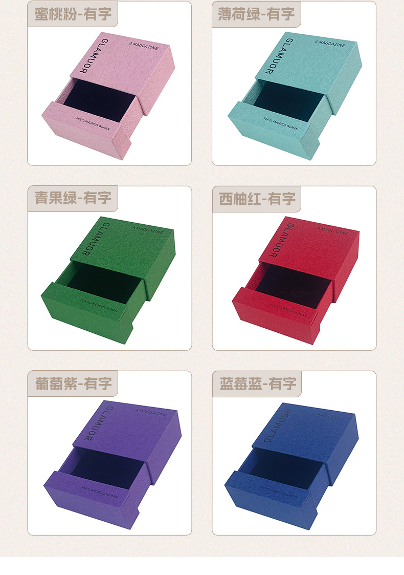 Specifications and models: Blueberry-colored hand-kneaded paper (with black hot stamping pattern)/lined with velvet sponge; 10.5*10.2*4.2cm (outer size)