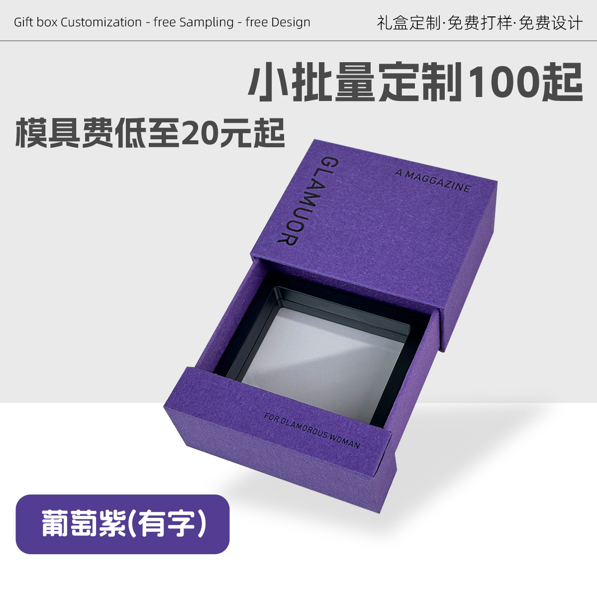 Specifications and models: Grape purple hand-kneaded paper (with black hot stamping pattern)/lined with velvet sponge; 10.5*10.2*4.2cm (outer size)