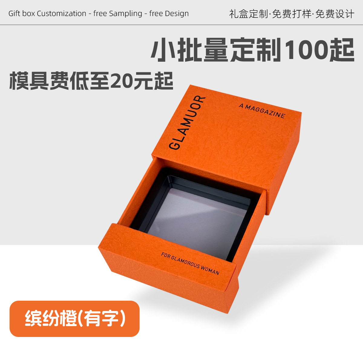 Specifications and models: Colorful orange hand-kneaded paper (with black hot stamping pattern)/lined with velvet sponge; 10.5*10.2*4.2cm (outer size)