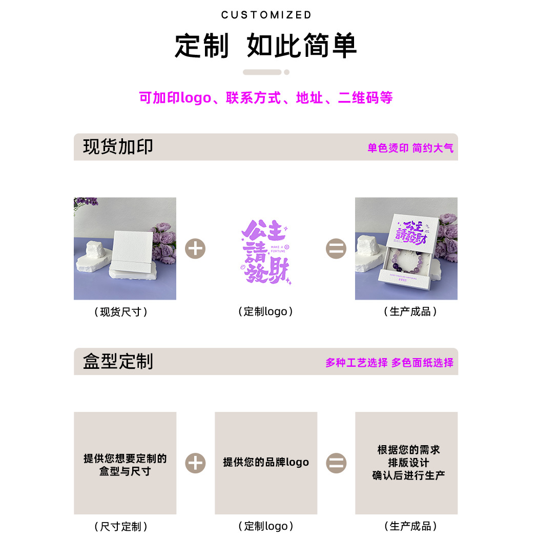 Specifications and models: Grape purple hand-kneaded paper (with black hot stamping pattern)/lined with black suspension box; 10.5*10.2*4.2cm (outer size)