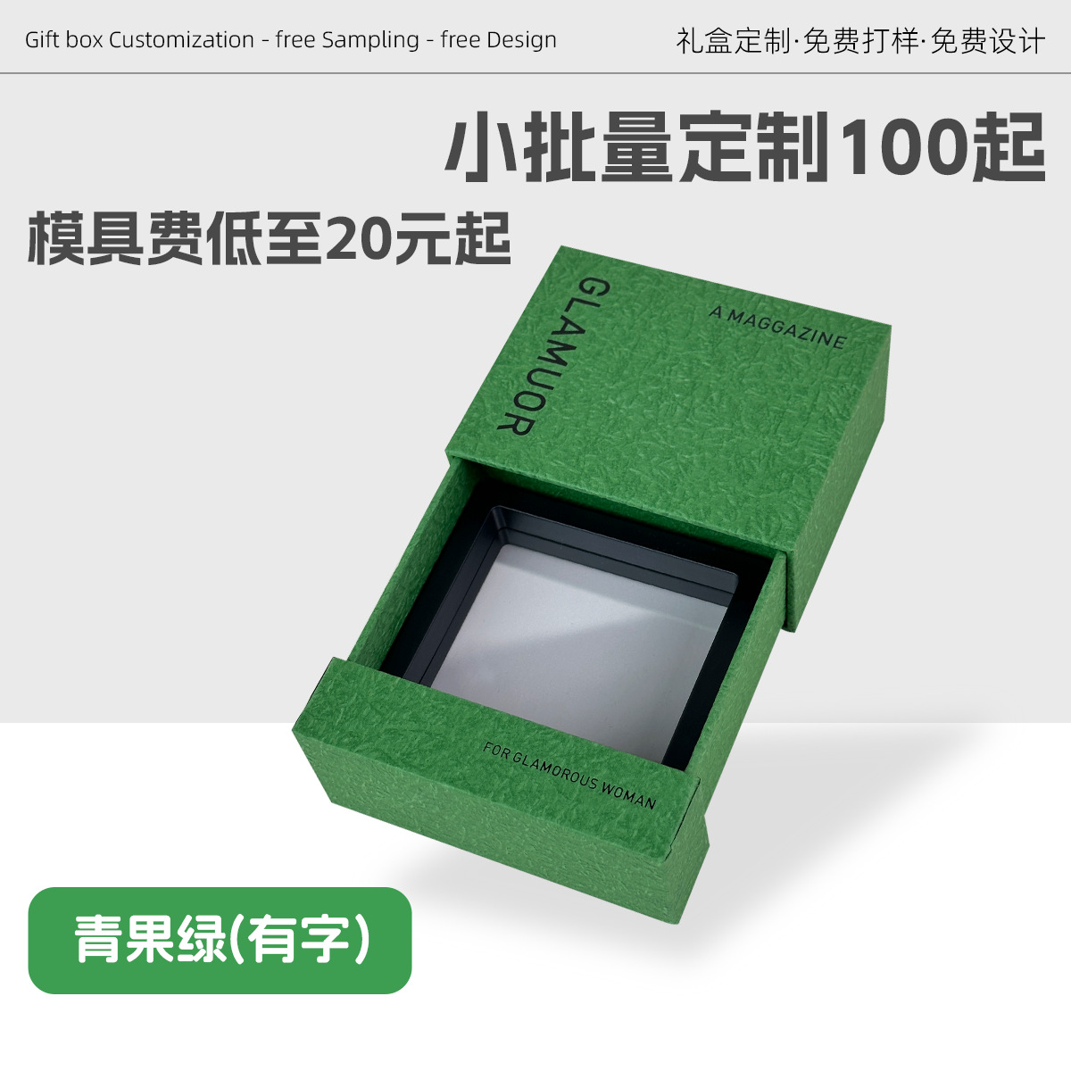 Specifications and models: Green fruit green hand-rolled paper (with black hot stamping pattern)/lined with velvet sponge; 10.5*10.2*4.2cm (outer size)