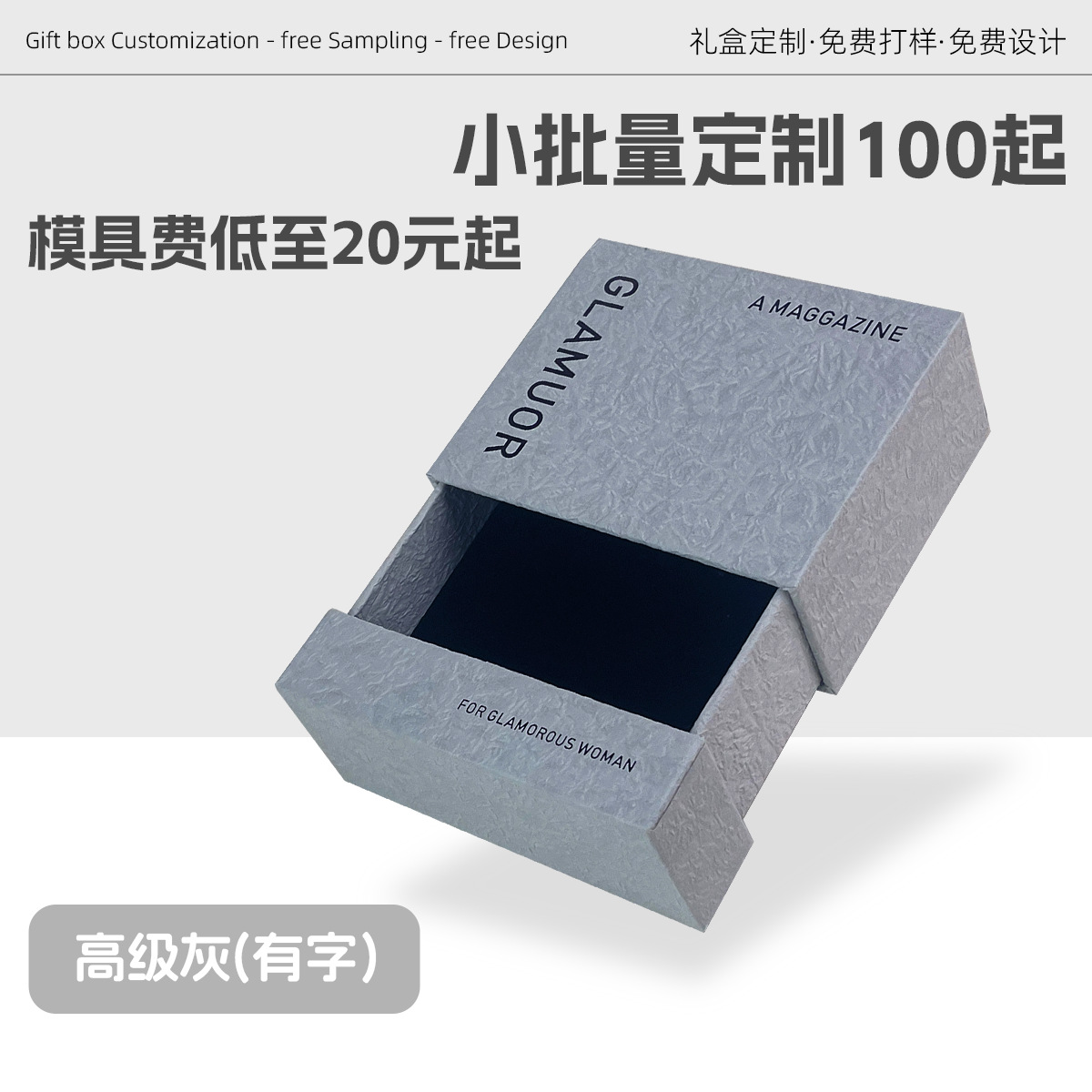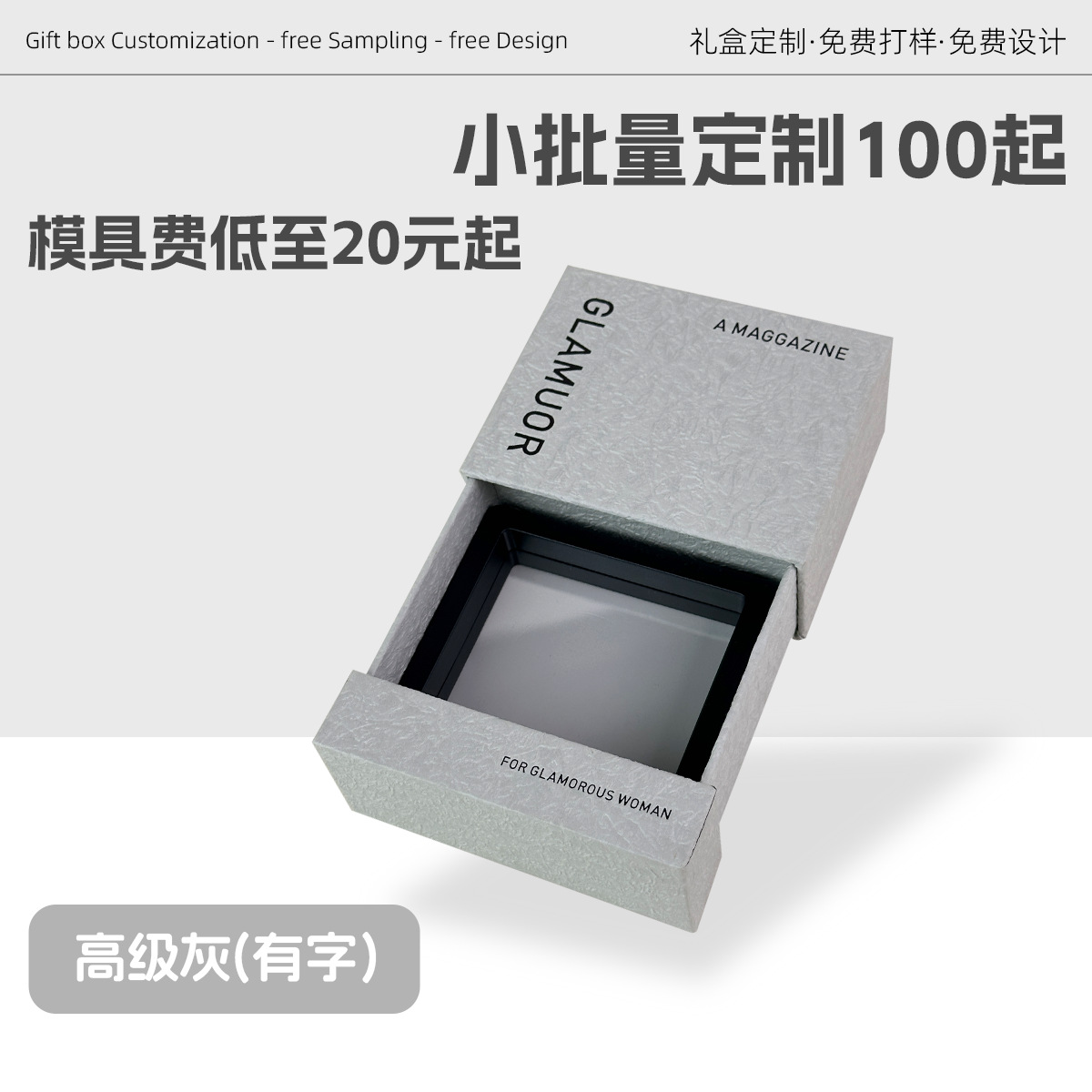 Specifications and models: High-grade gray hand-kneaded paper (with black hot stamping pattern)/lining with velvet sponge; 10.5*10.2*4.2cm (outer size)