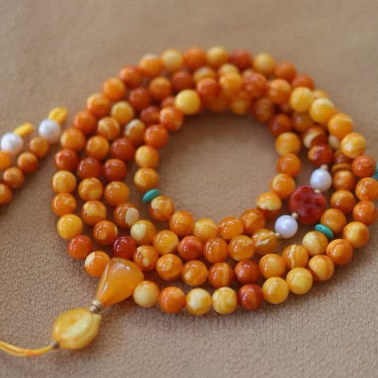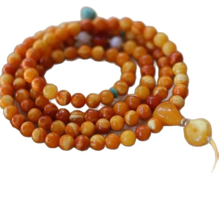 Natural Beeswax Old Wax Safflower Wax 108 Buddha Bead Chain with Rich Waxiness, Clear Texture and Enchanting Quality Visible Lx