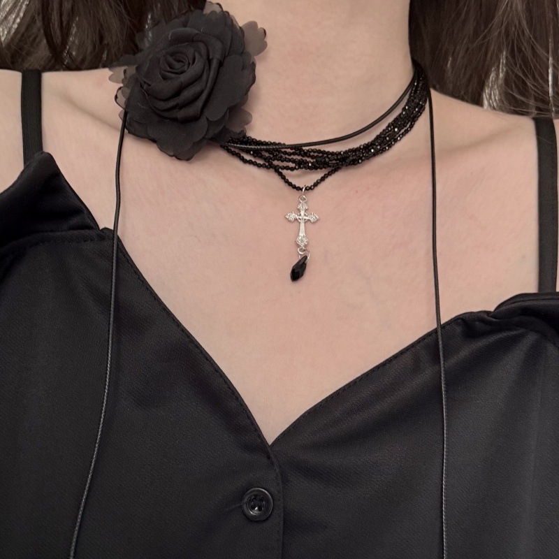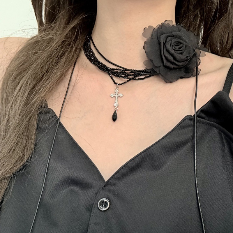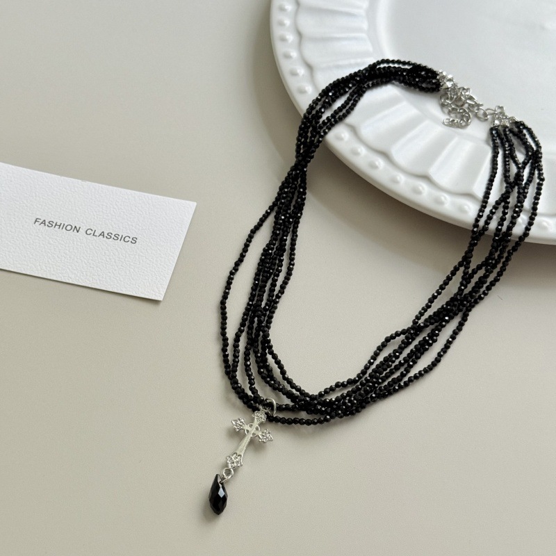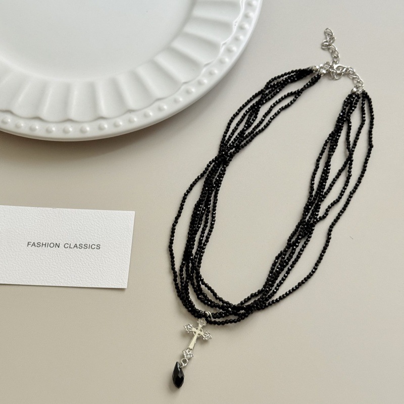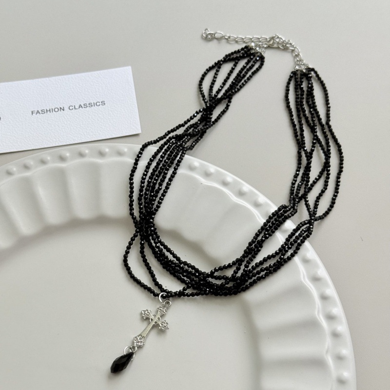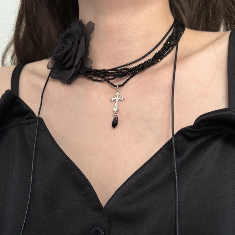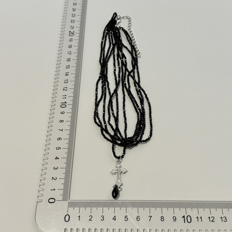 Color: Black crystal silver cross necklace