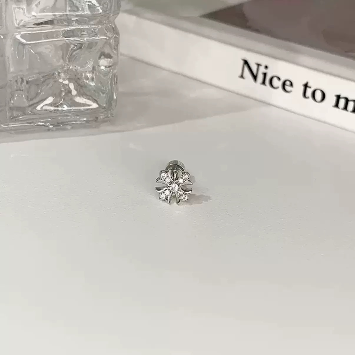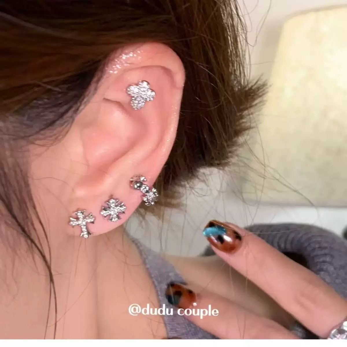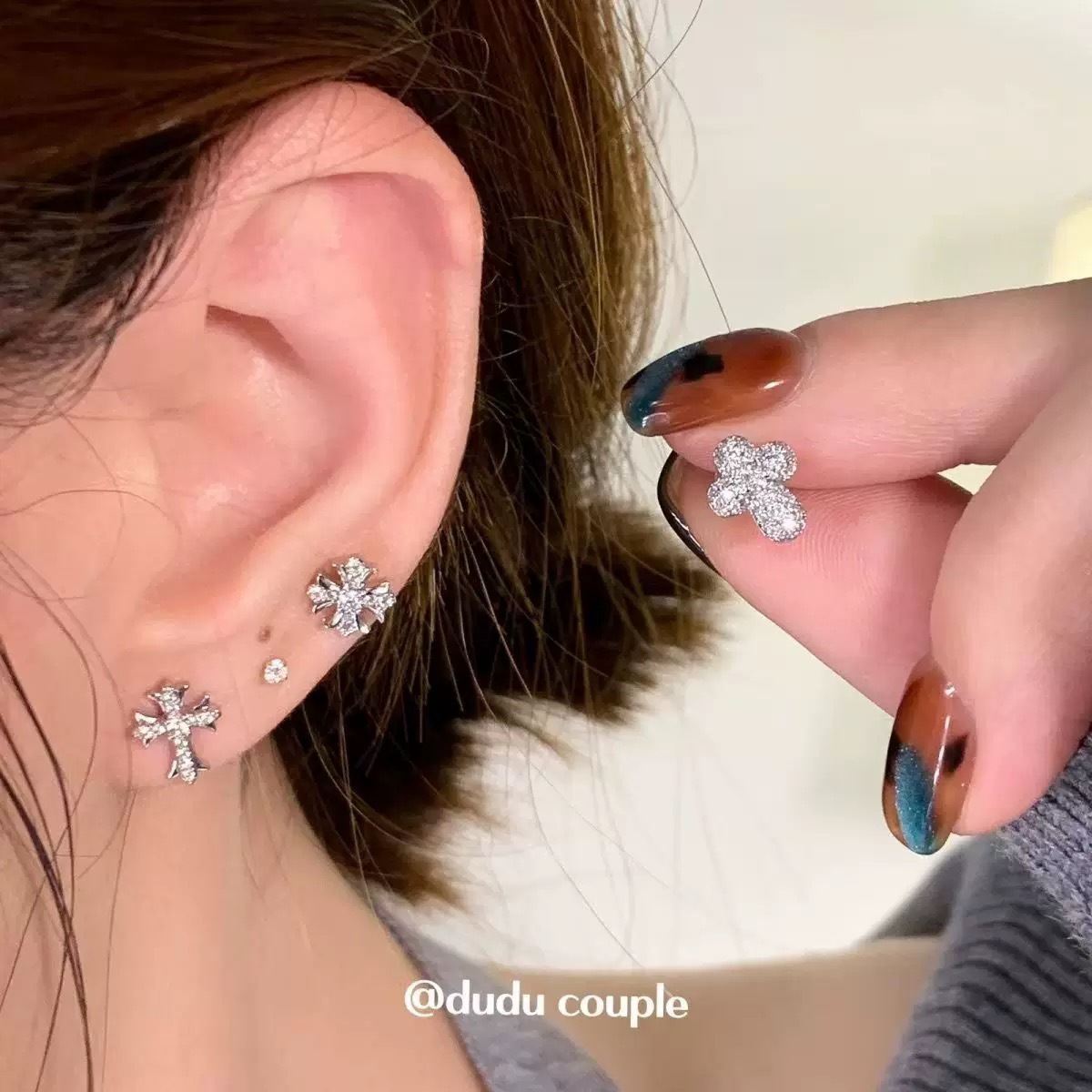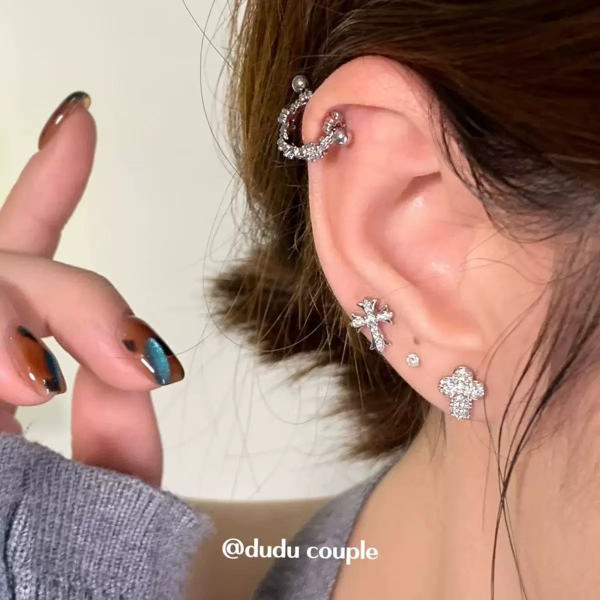 Cross-Shaped Ear Bone Studs with Super Shiny Zircon Flat Bottom Cochlear Studs for Women
