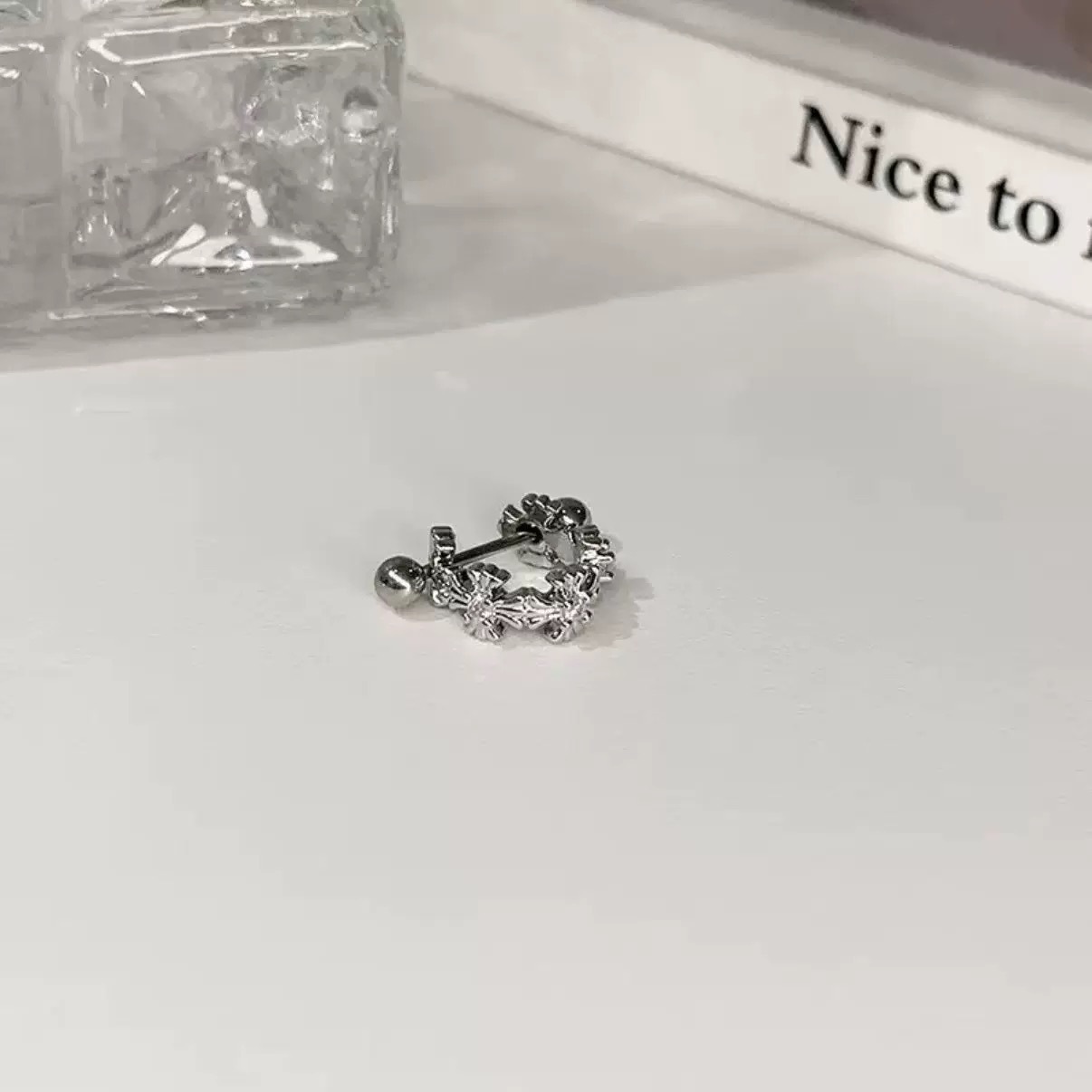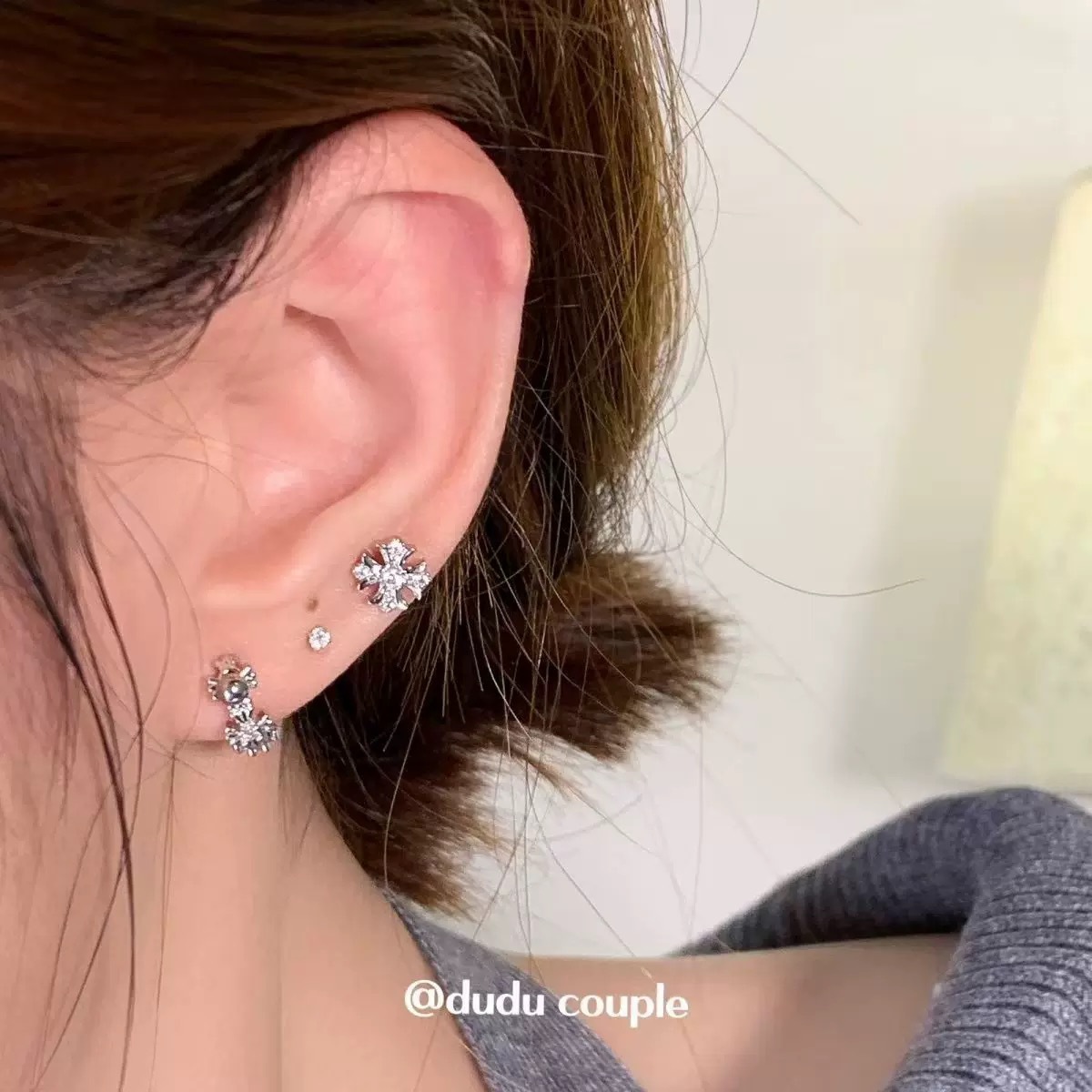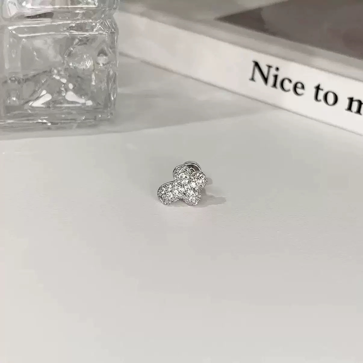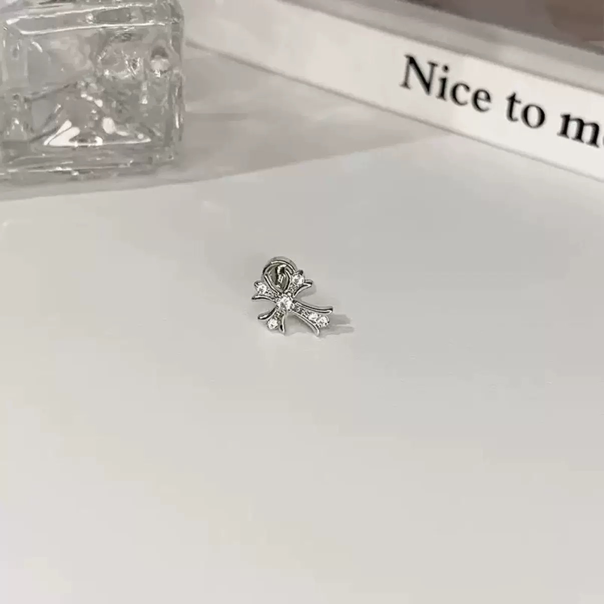 Cross-Shaped Ear Bone Studs with Super Shiny Zircon Flat Bottom Cochlear Studs for Women