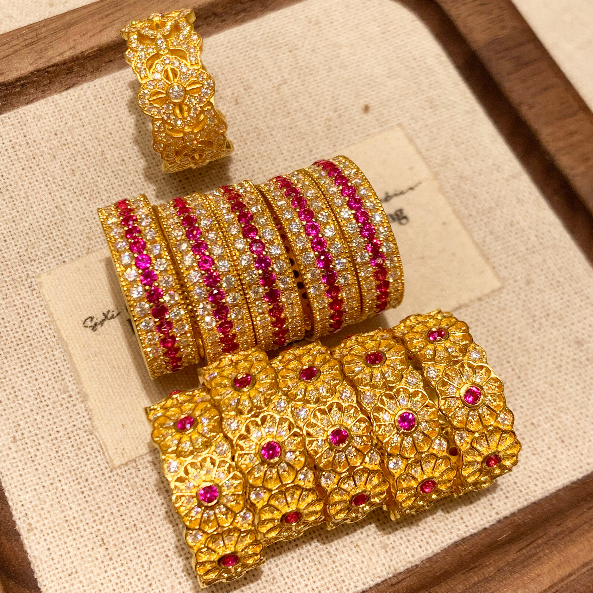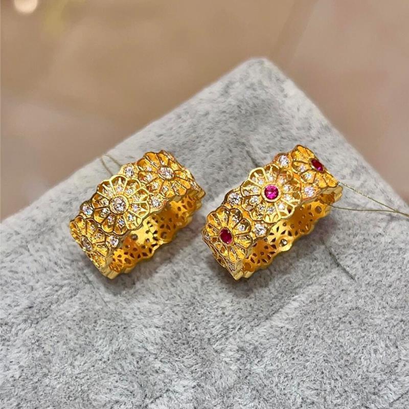 Shajin Cross Vajra Pestle Ring with Diamond Ruby Flower Window Gold Plated 24k Ring for Girls