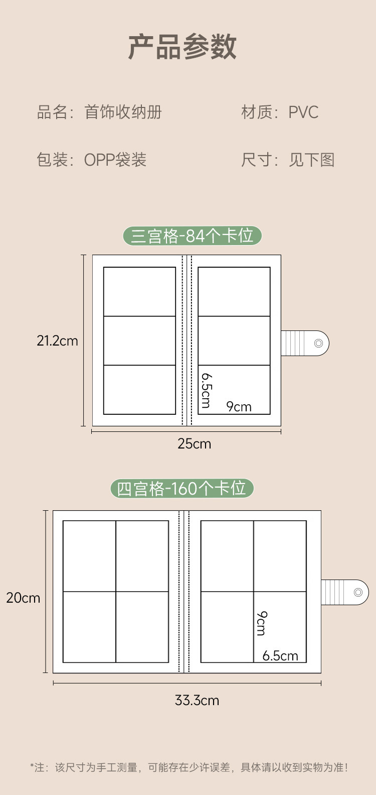 Color: Three-square grid (84 cards)*1 + 40 jewelry bags