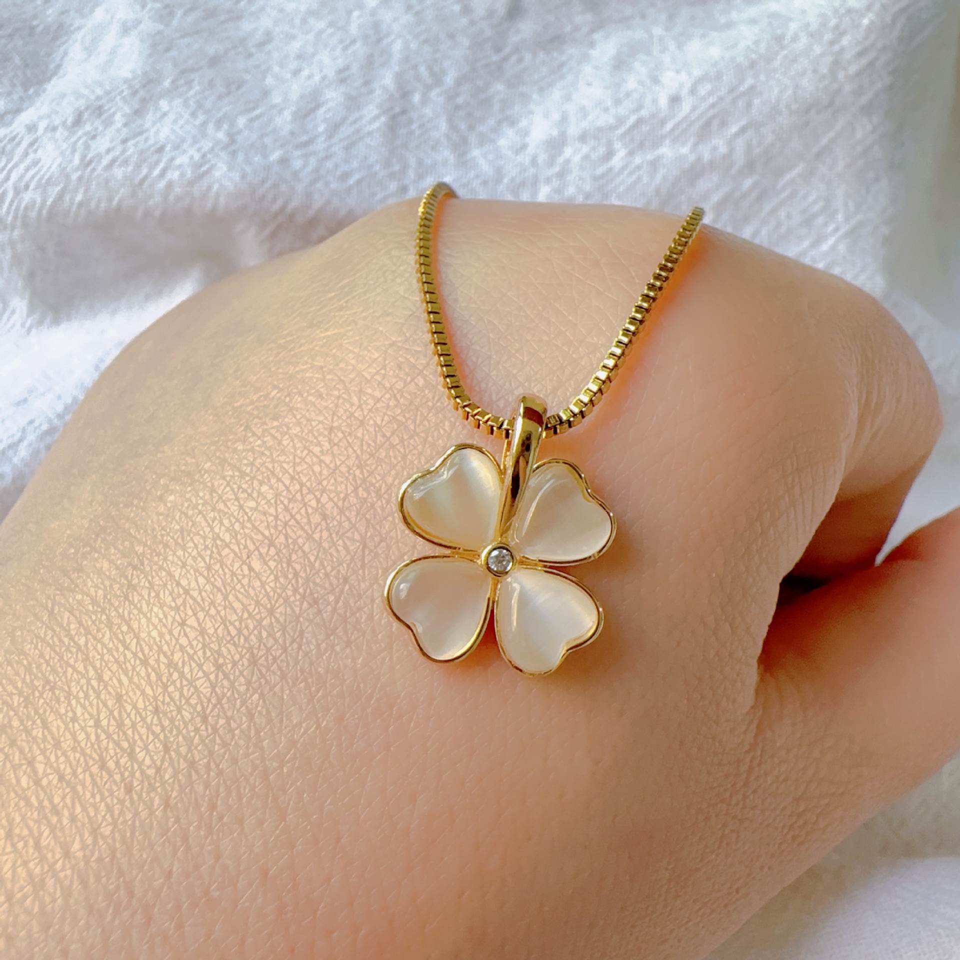 New Four-Leaf Clover Mother-Of-Pearl Fashionable Versatile Necklace Copper Pendant Wedding Banquet Holiday Gift
