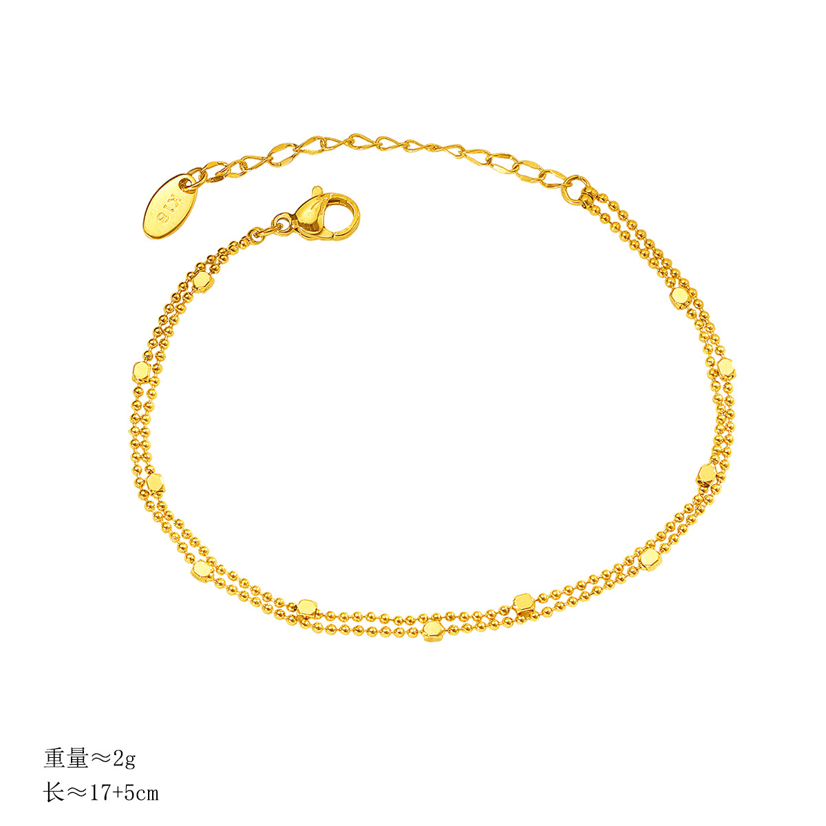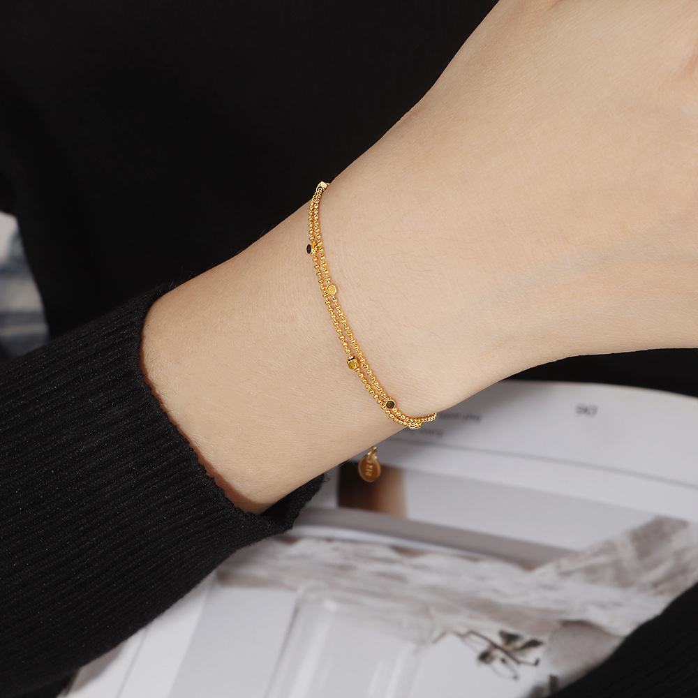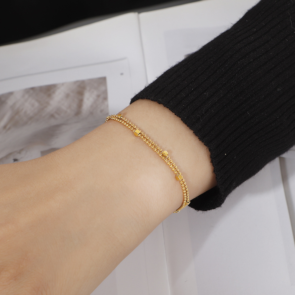 Color: S155 round bead square double layer bracelet gold