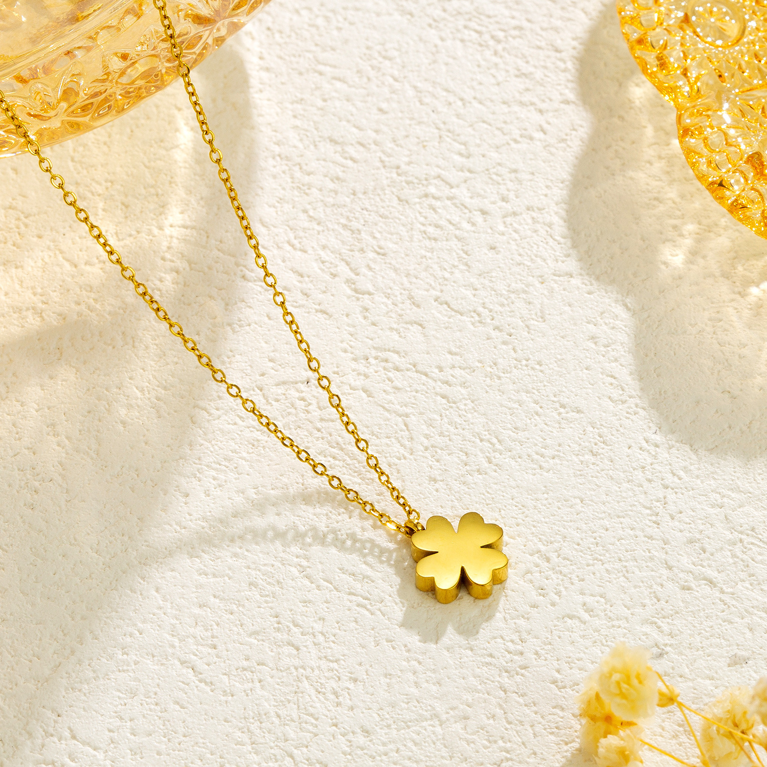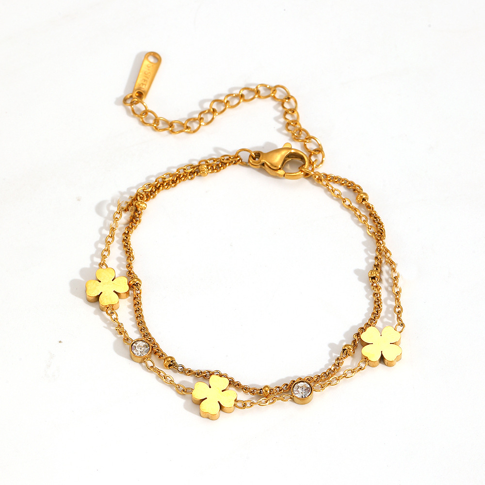 Cross-border stainless steel beaded floret jewelry European and American titanium steel does not fade four-leaf clover diamond double-layer jewelry suit