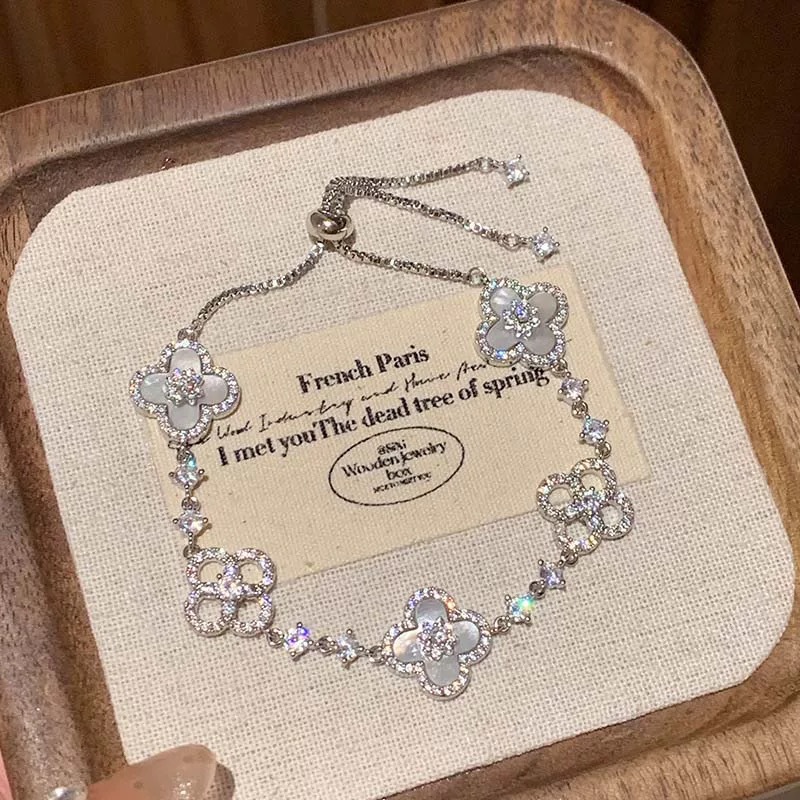 Color: Sl-114-red four-leaf clover bracelet-gold