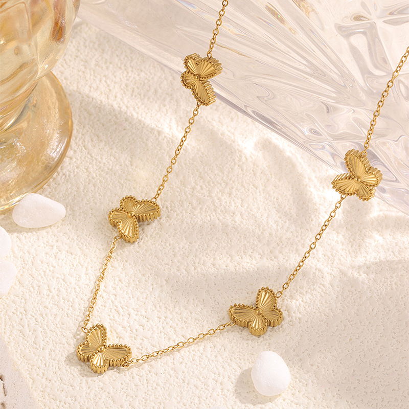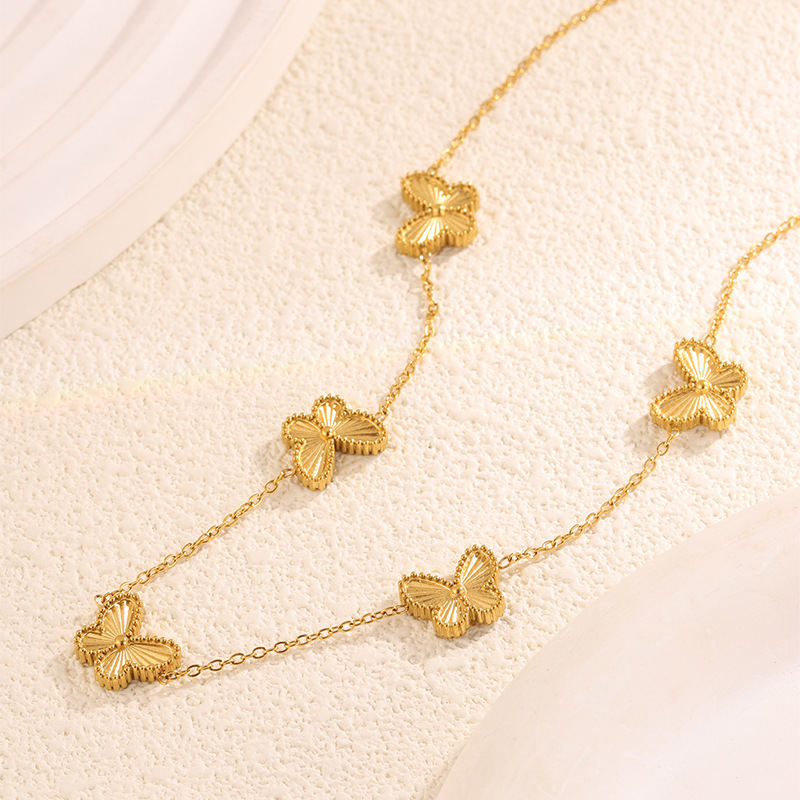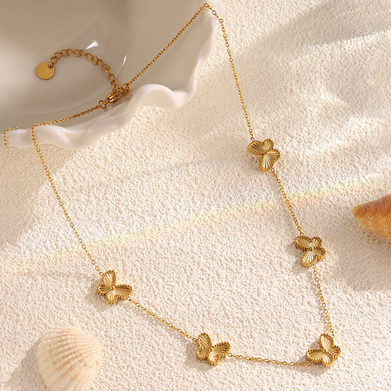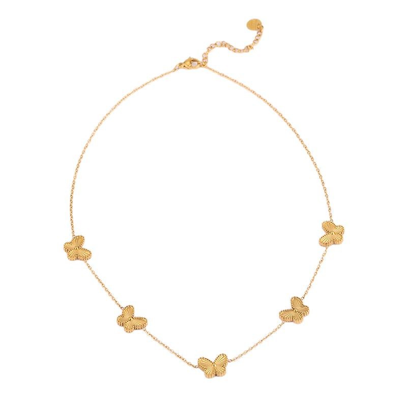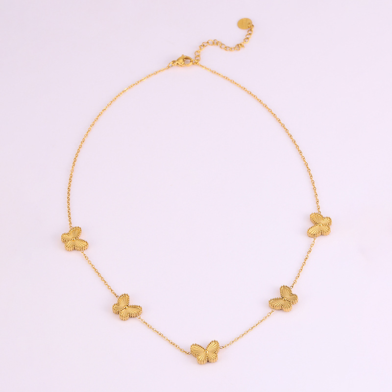 Fashion New Casual Style Butterfly Titanium Steel Necklace for Girls Sweet and Clear Clavicle Chain Non-Fading Necklace Jewelry