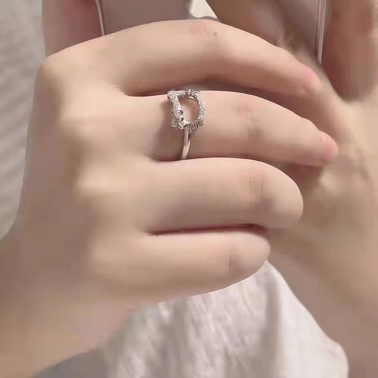 Cute Kt Cat Ring for Girls, Cartoon Soft Girl, Sweet, Simple, Fashionable, Versatile, Shiny, Popular Bestie Open Ring