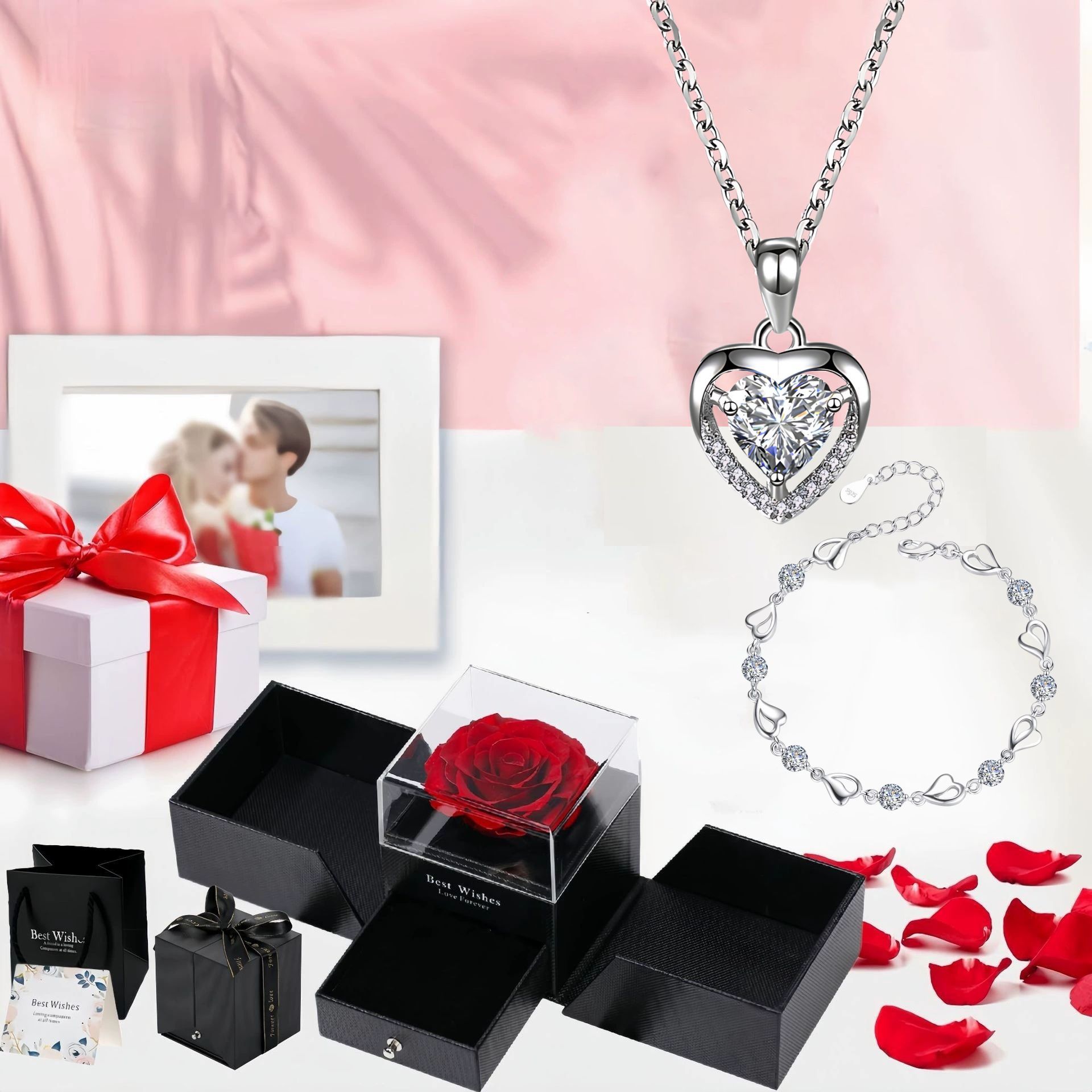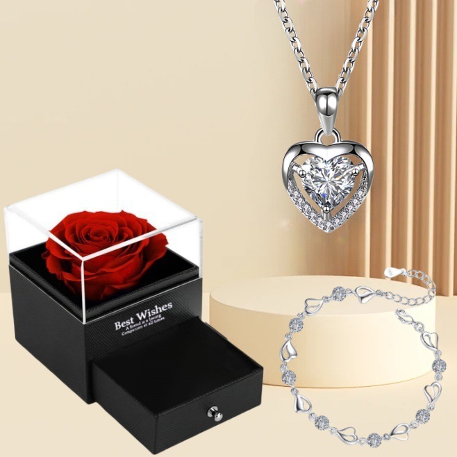 Color: Heart of the ocean white bracelet with necklace + a rose double gift box