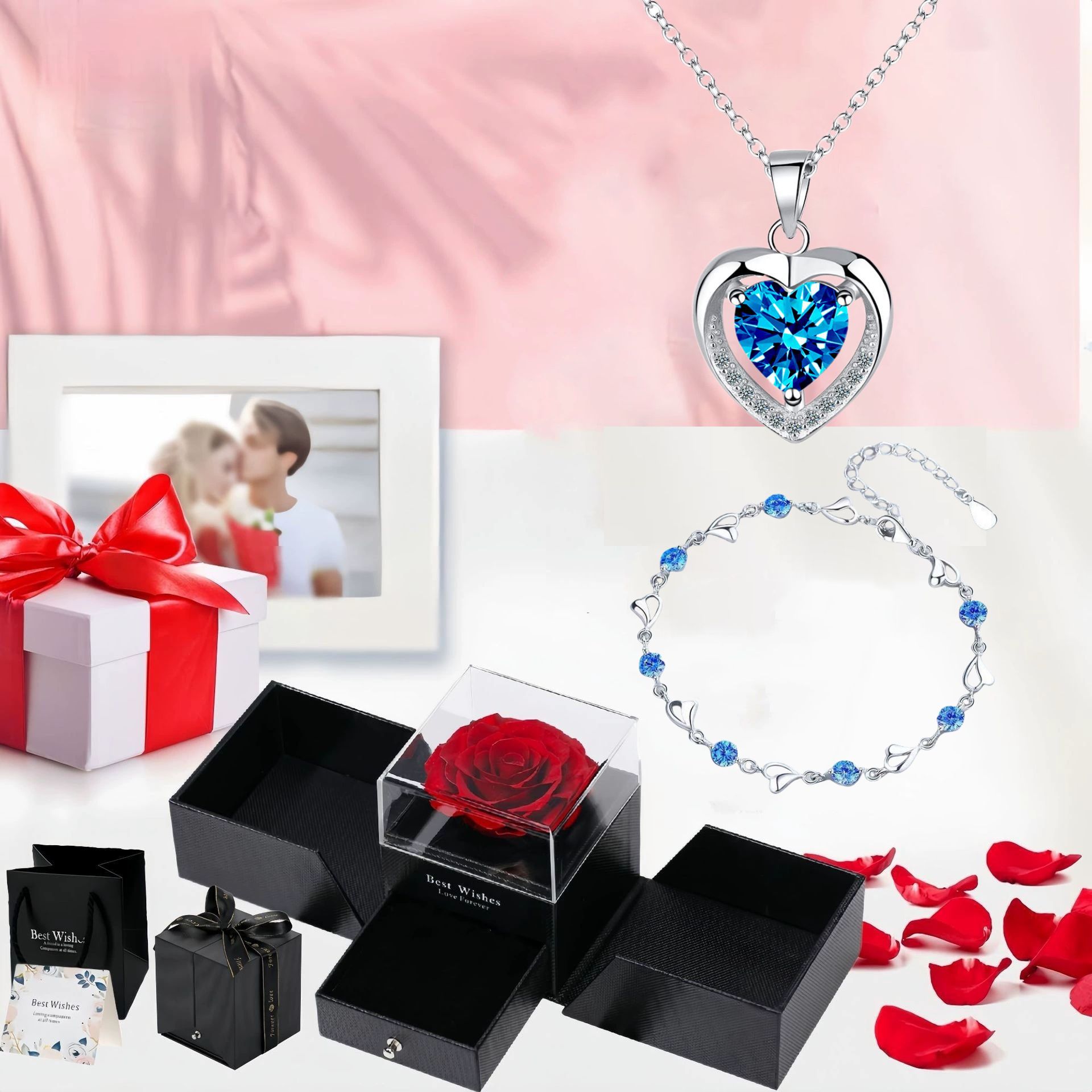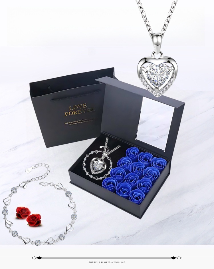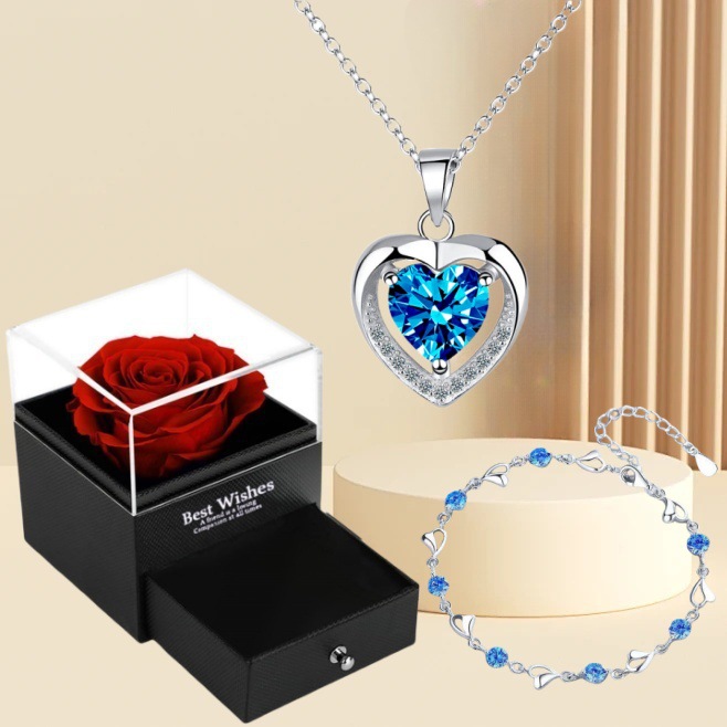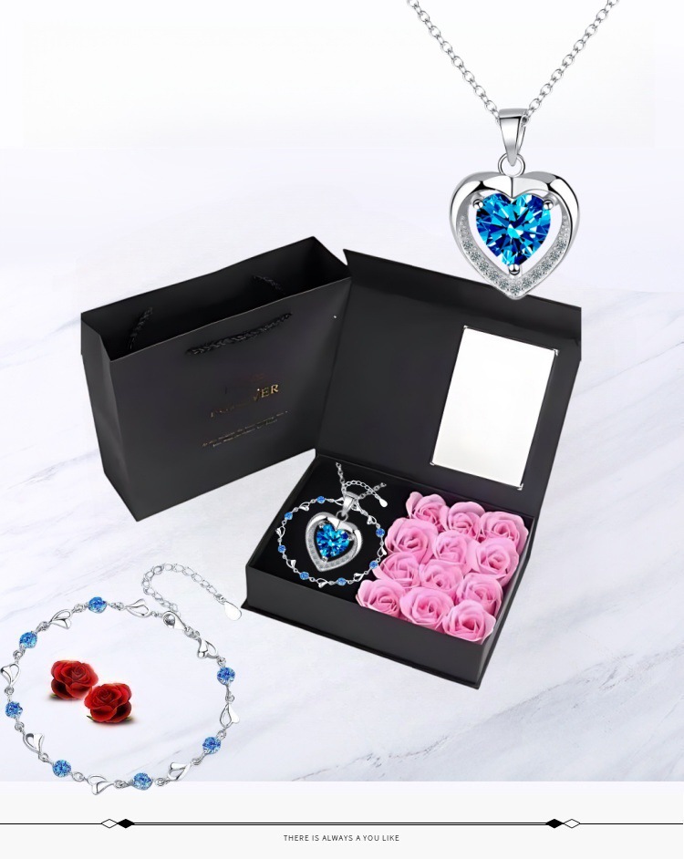 Color: Heart of the ocean blue bracelet with necklace + a rose double gift box