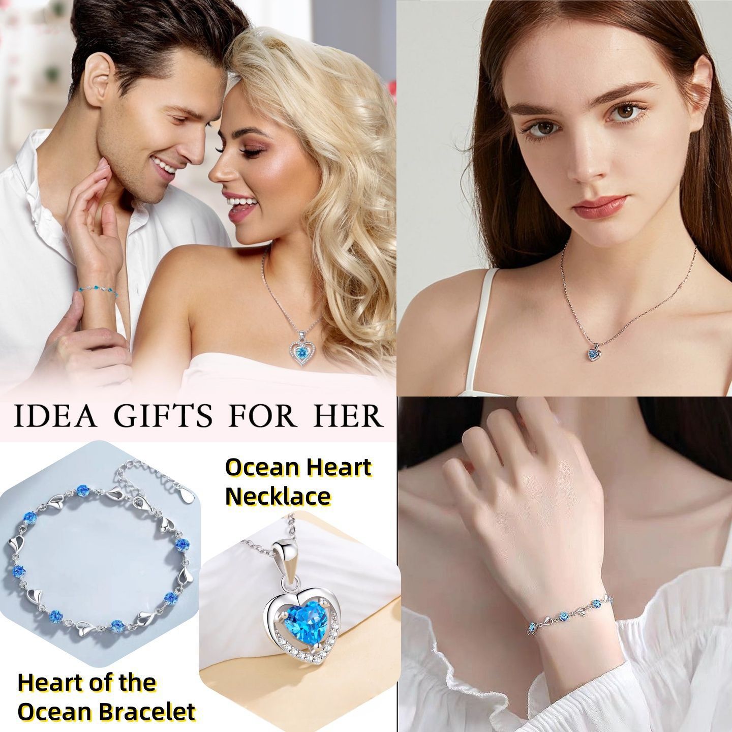 Color: Heart of the ocean blue bracelet with necklace + forever love gift box pink