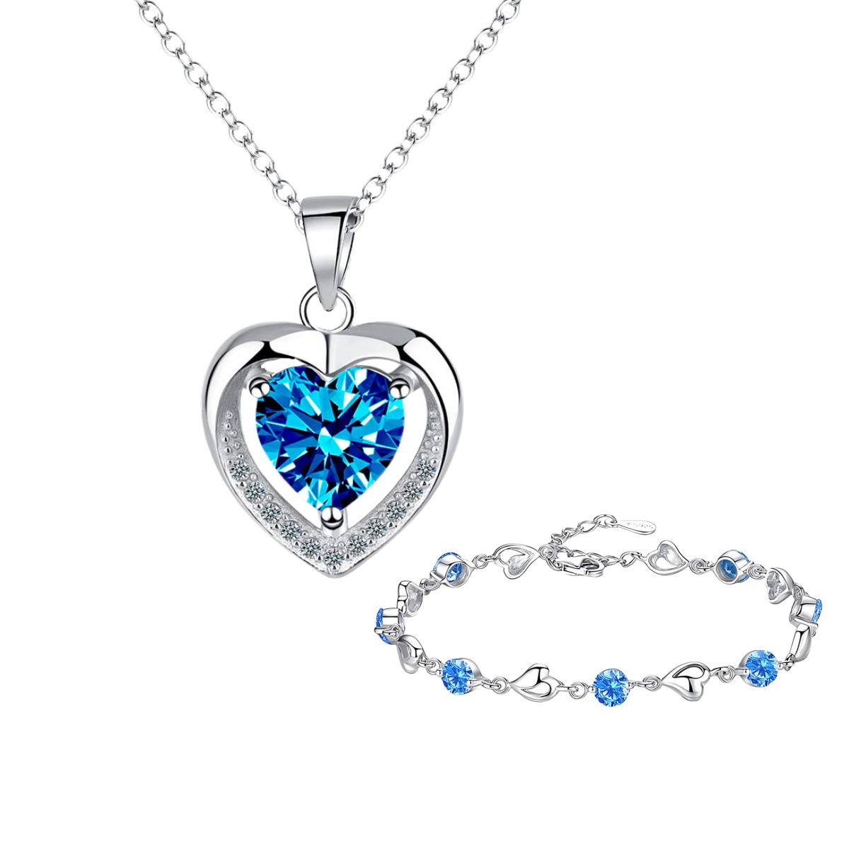 Color: Heart of the ocean blue bracelet with necklace + forever love gift box blue