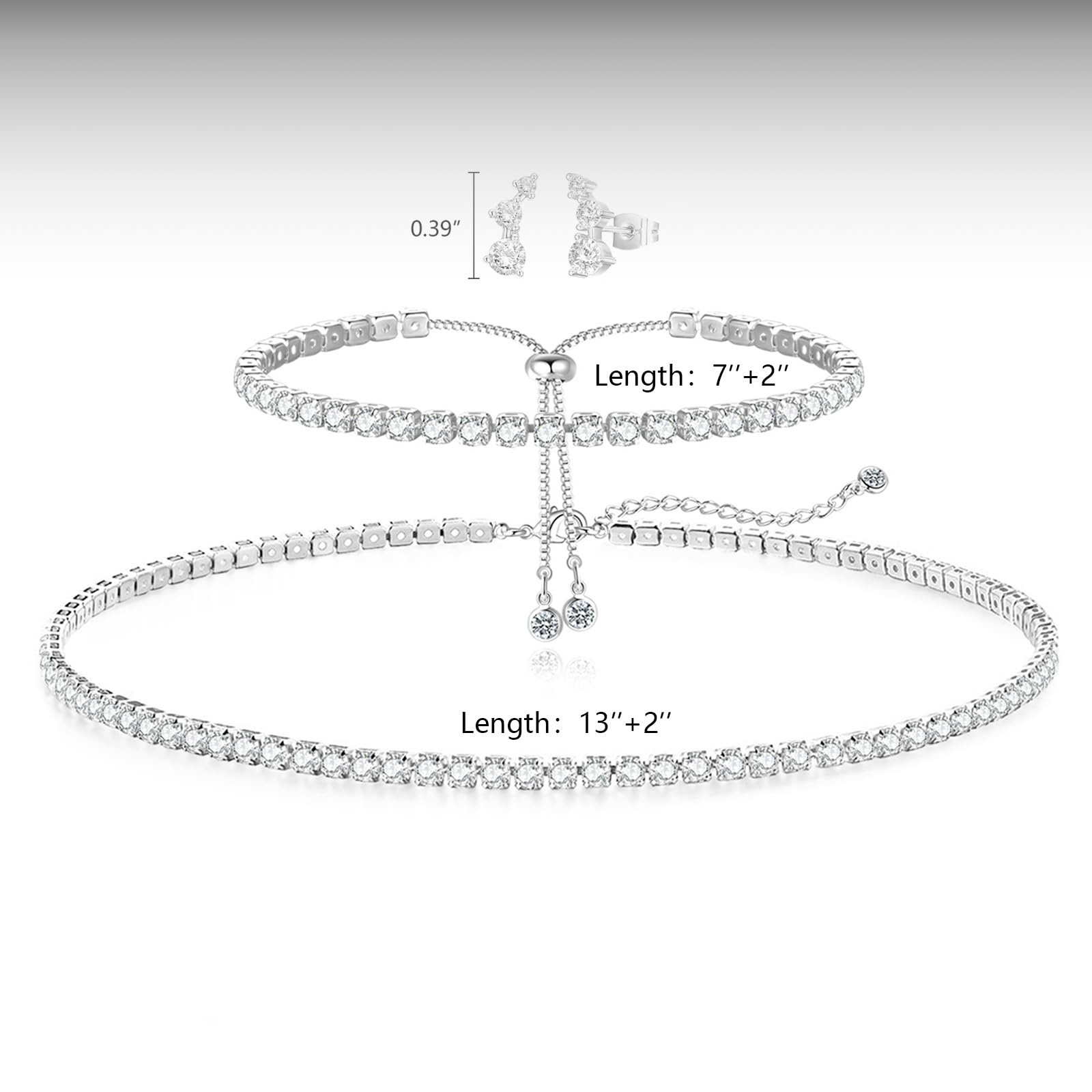 Europe and the United States cross-border explosions jewelry fashion simple versatile high sense zircon necklace bracelet earrings three-piece set