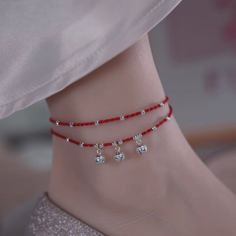 One-step silver bell anklet girls niche light luxury simple ins wind one-step think foot chain cross-border explosions