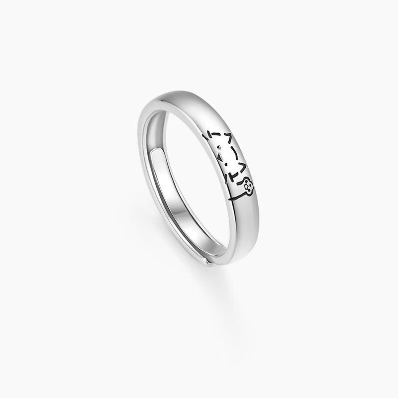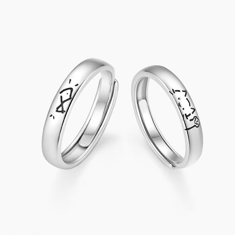Eat Your Cat and Fish Couple's Ring for Women's Niche Design Ring Sweet Advanced Adjustable ins Ring for Girlfriend