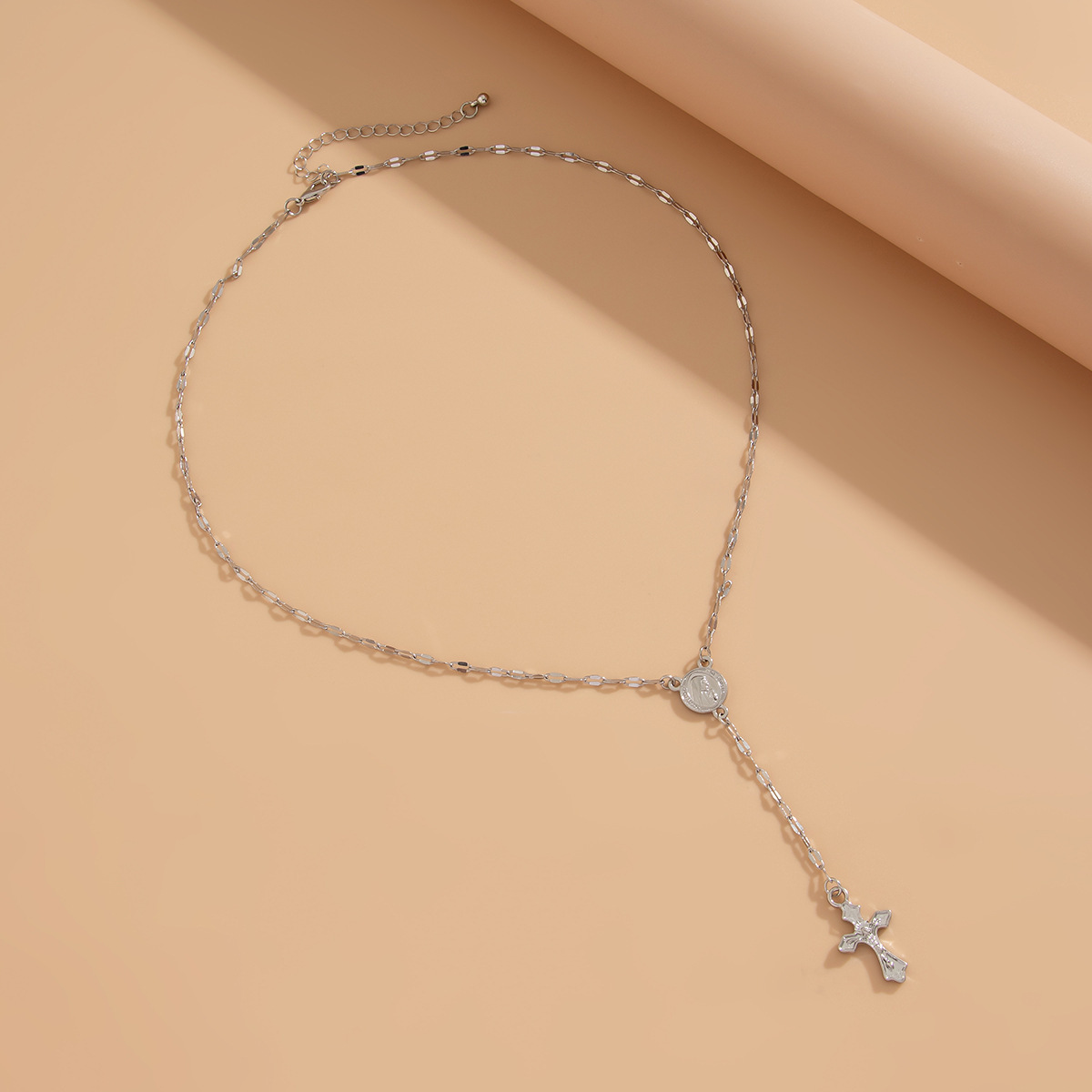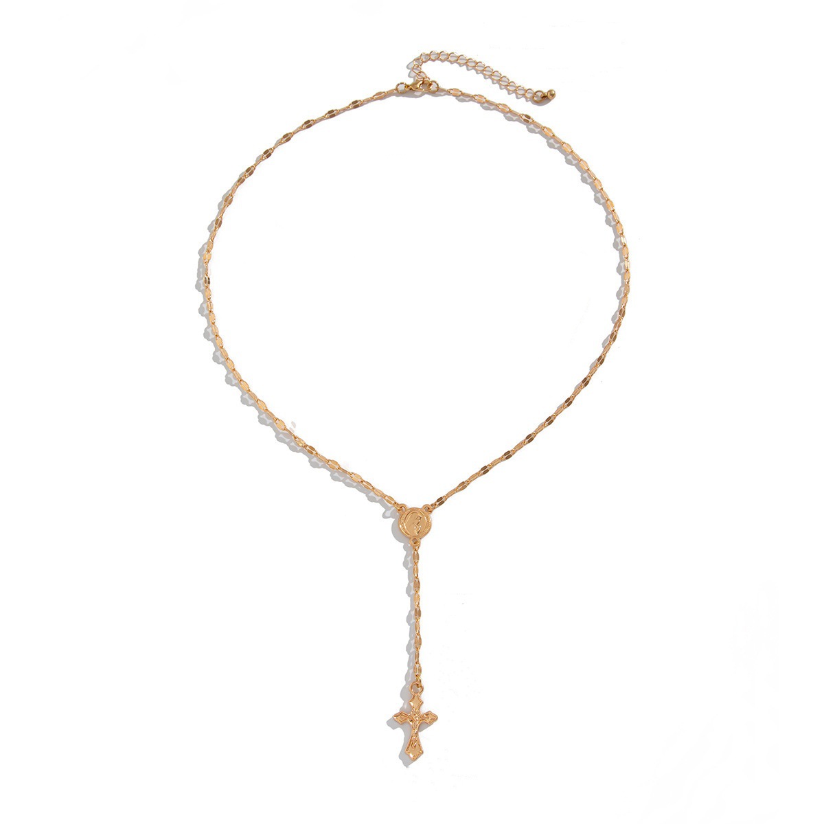 European and American Cross-Border Jewelry Fashion Retro Lip Chain Long Clavicle Chain Women's Simple Virgin Cross Pendant Necklace