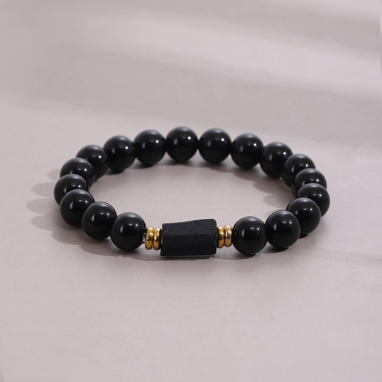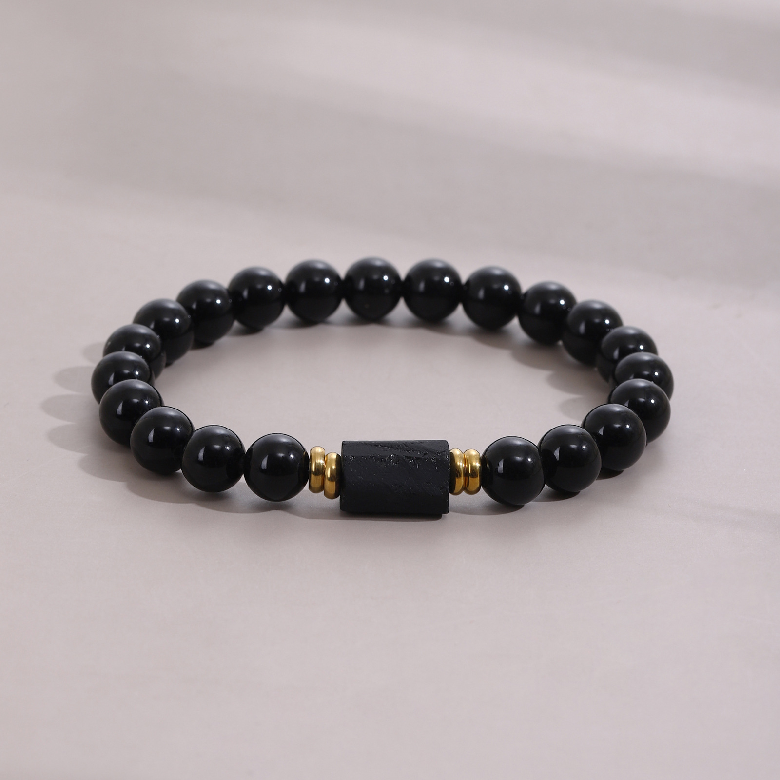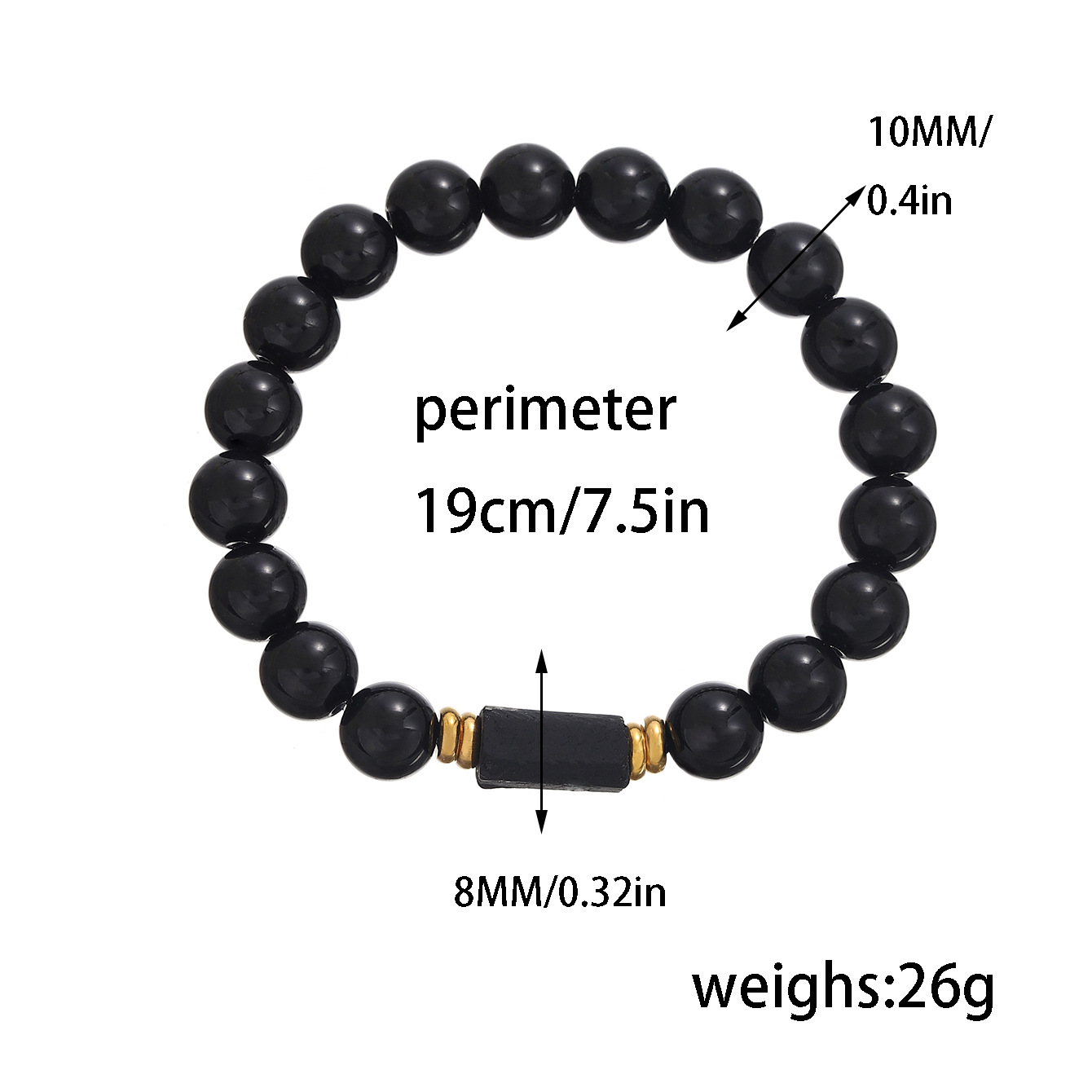 此款产品串珠材质为天然黑曜石,不锈钢镀18K金,串珠的大小分为6MM/8MM/10MM,重量分别为13g/21g/26g,opp袋装!