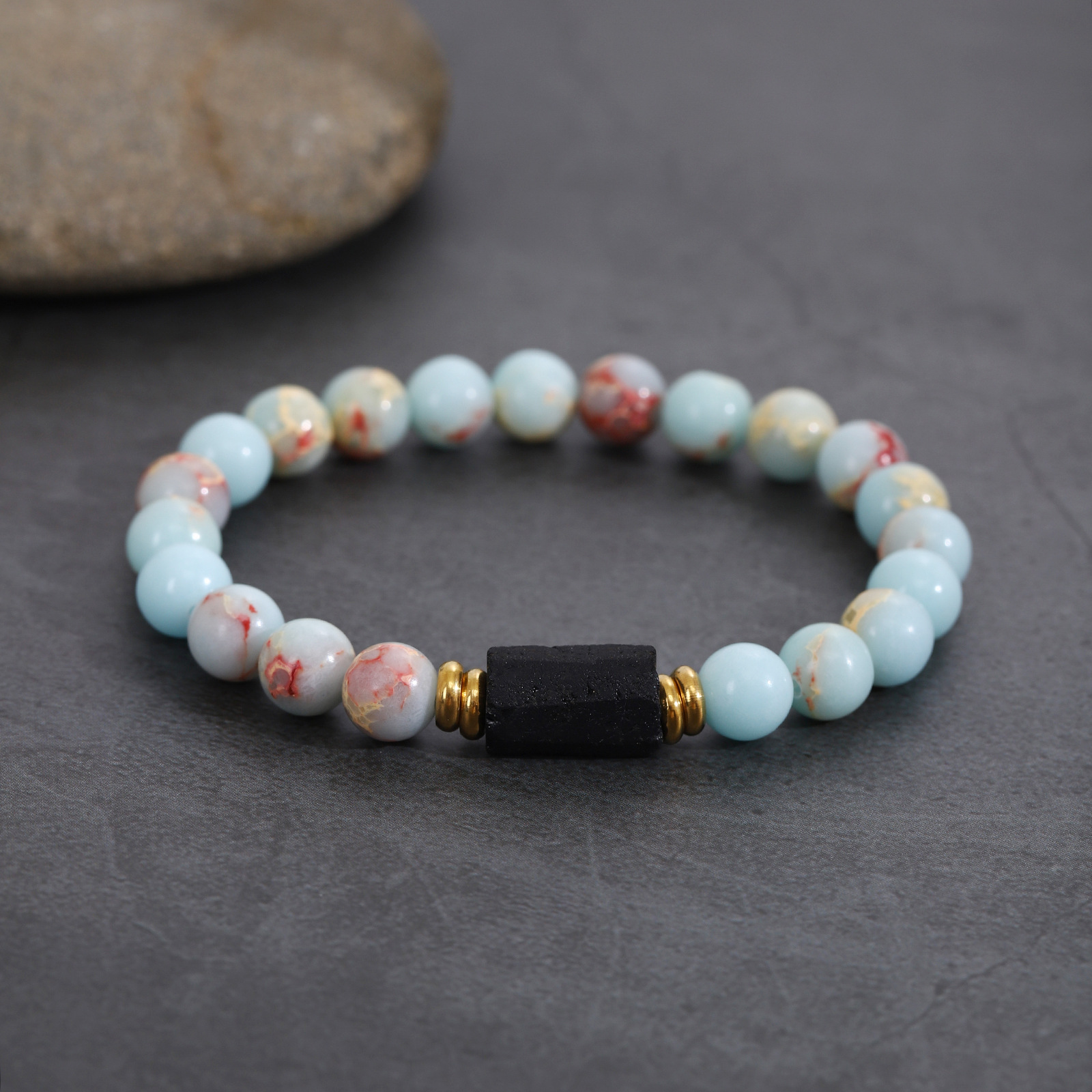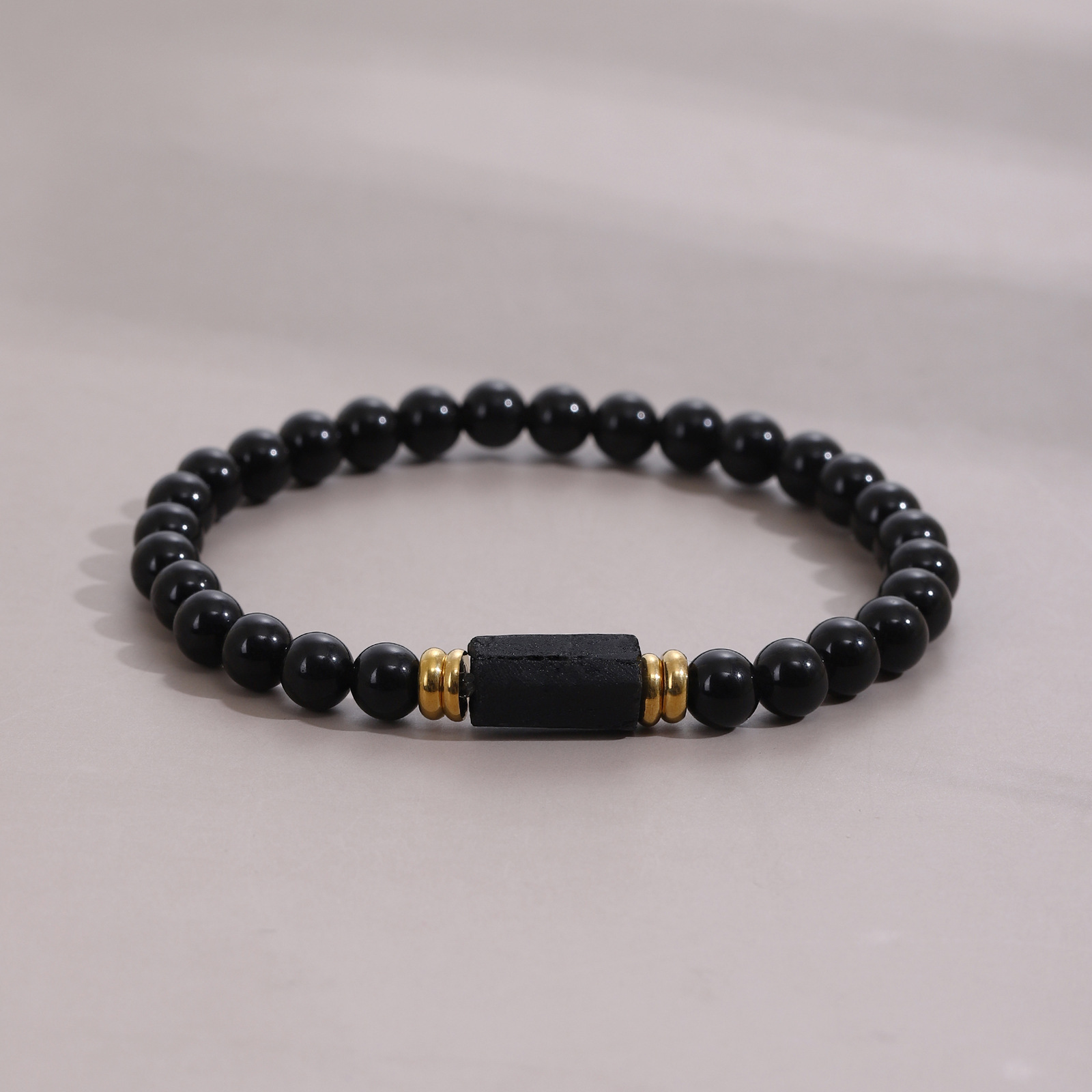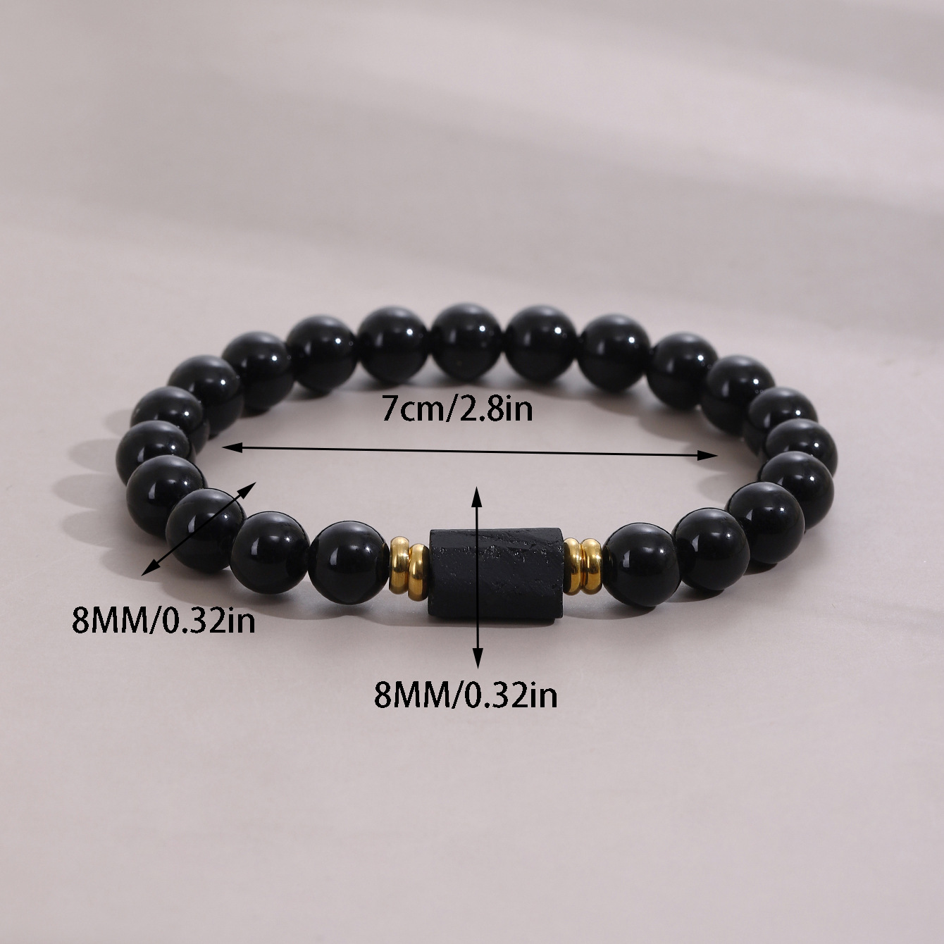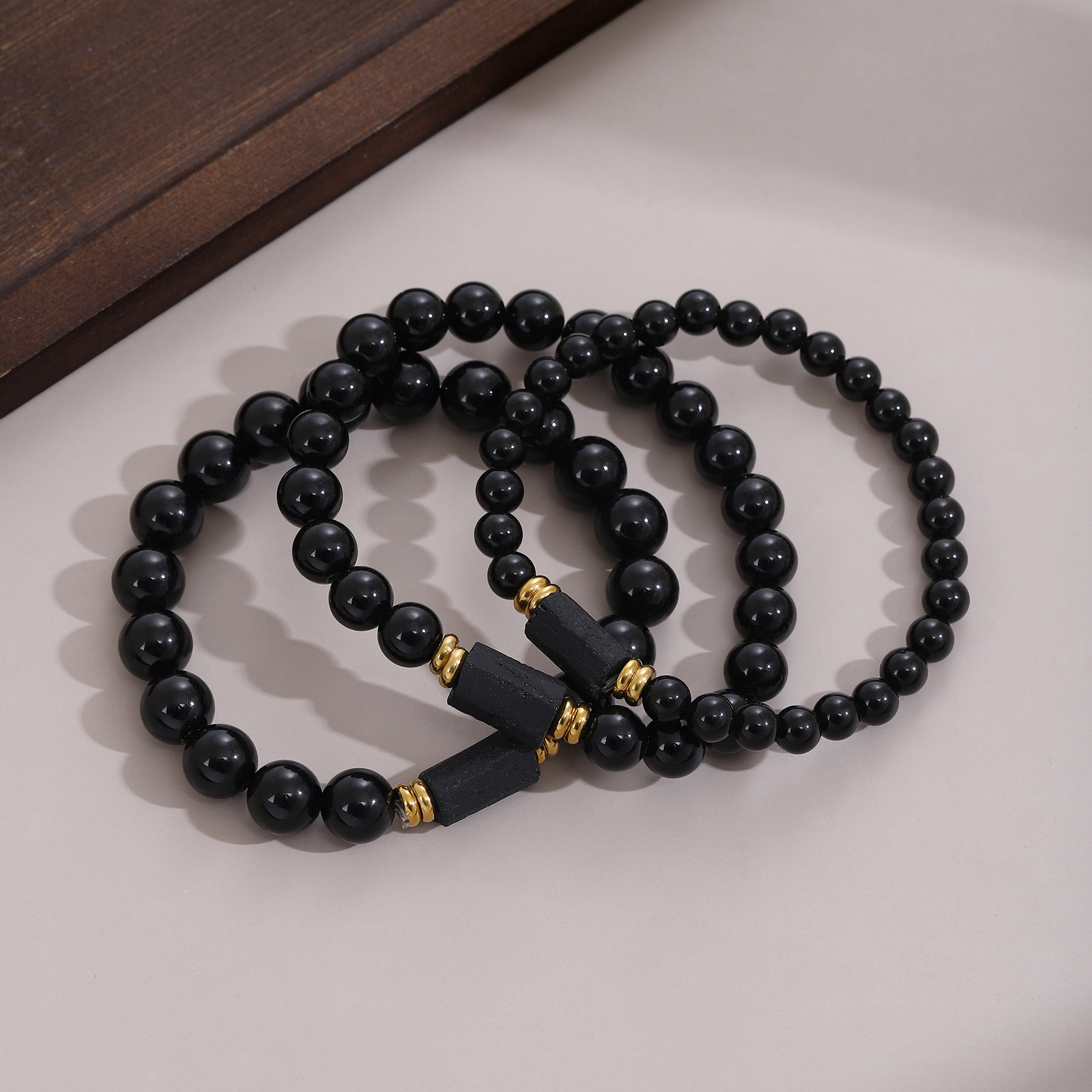 此款产品串珠材质为天然黑曜石,不锈钢镀18K金,串珠的大小分为6MM/8MM/10MM,重量分别为13g/21g/26g,opp袋装!