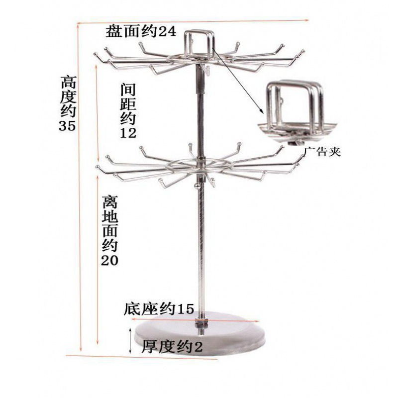 16钩旋转架X底座(高30厘米,40厘米) 优势:16钩,普通的一般只有12钩 尺寸;底座直径14CM ,旋转架直径21CM