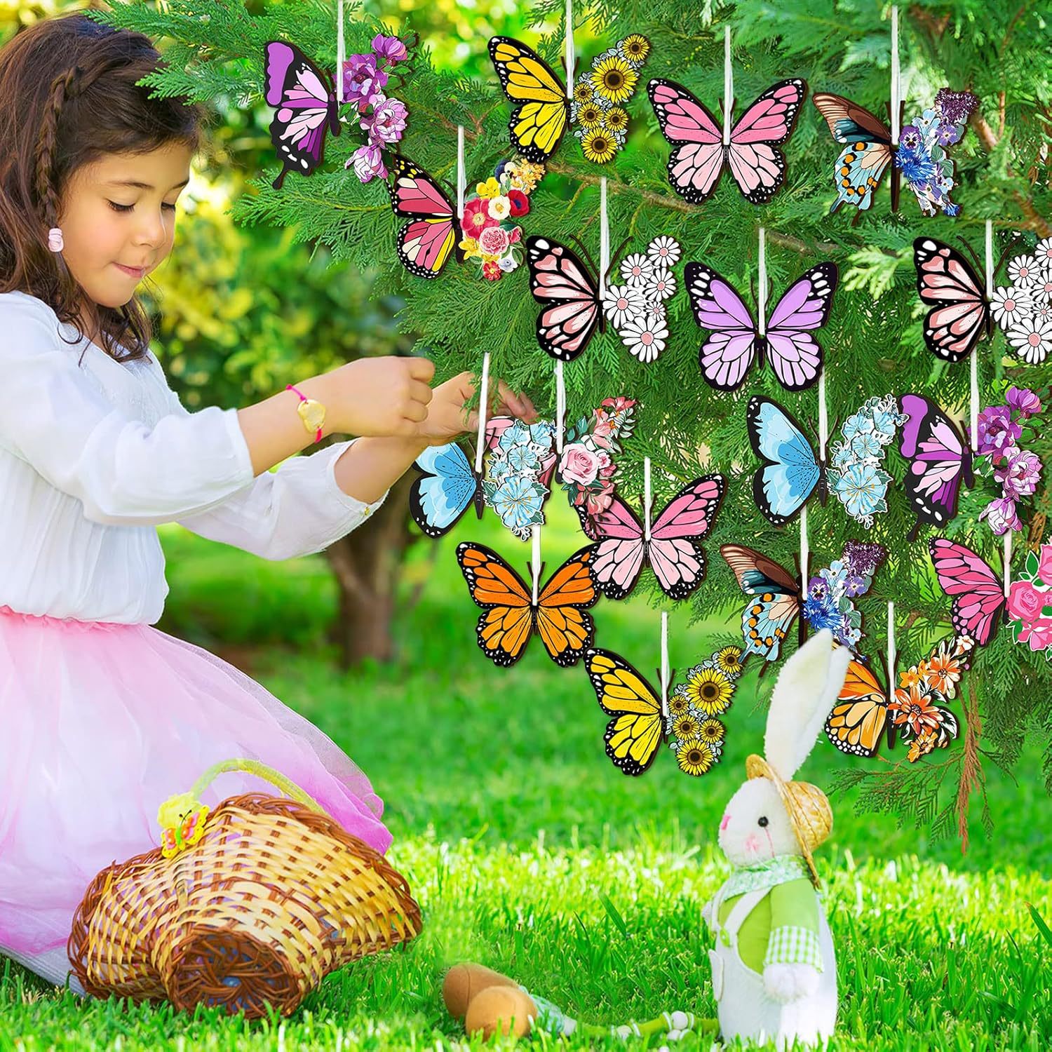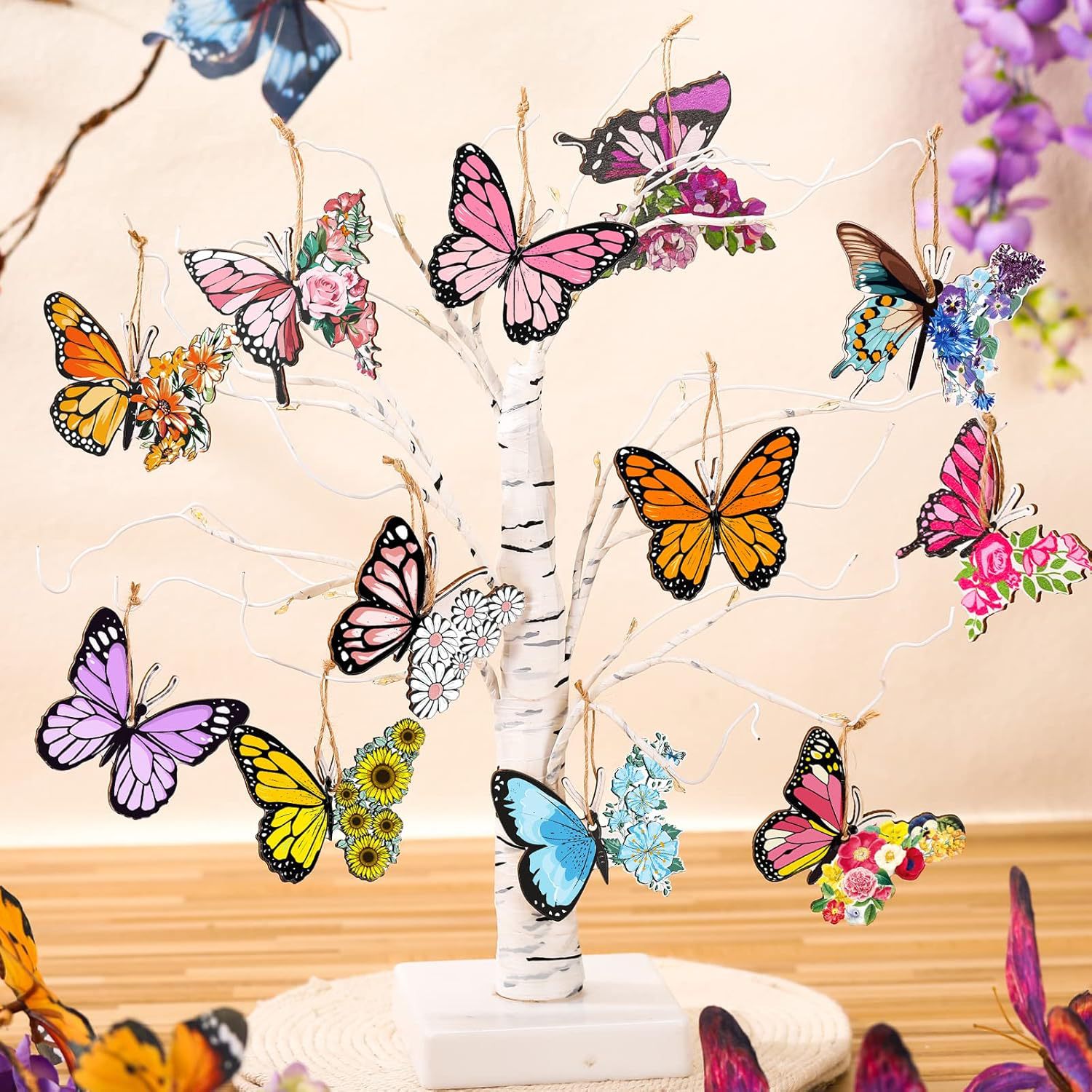 Summer Wooden Hanging Christmas Tree Decoration Hawaii Beach Wooden Pendant Hawaii Party Supplies (Butterfly)