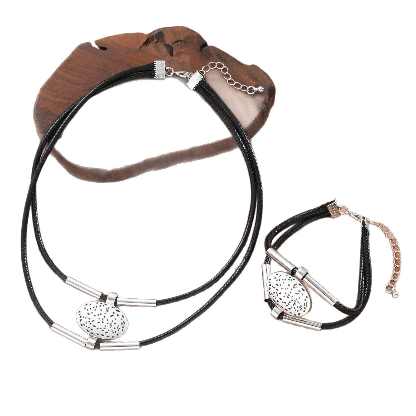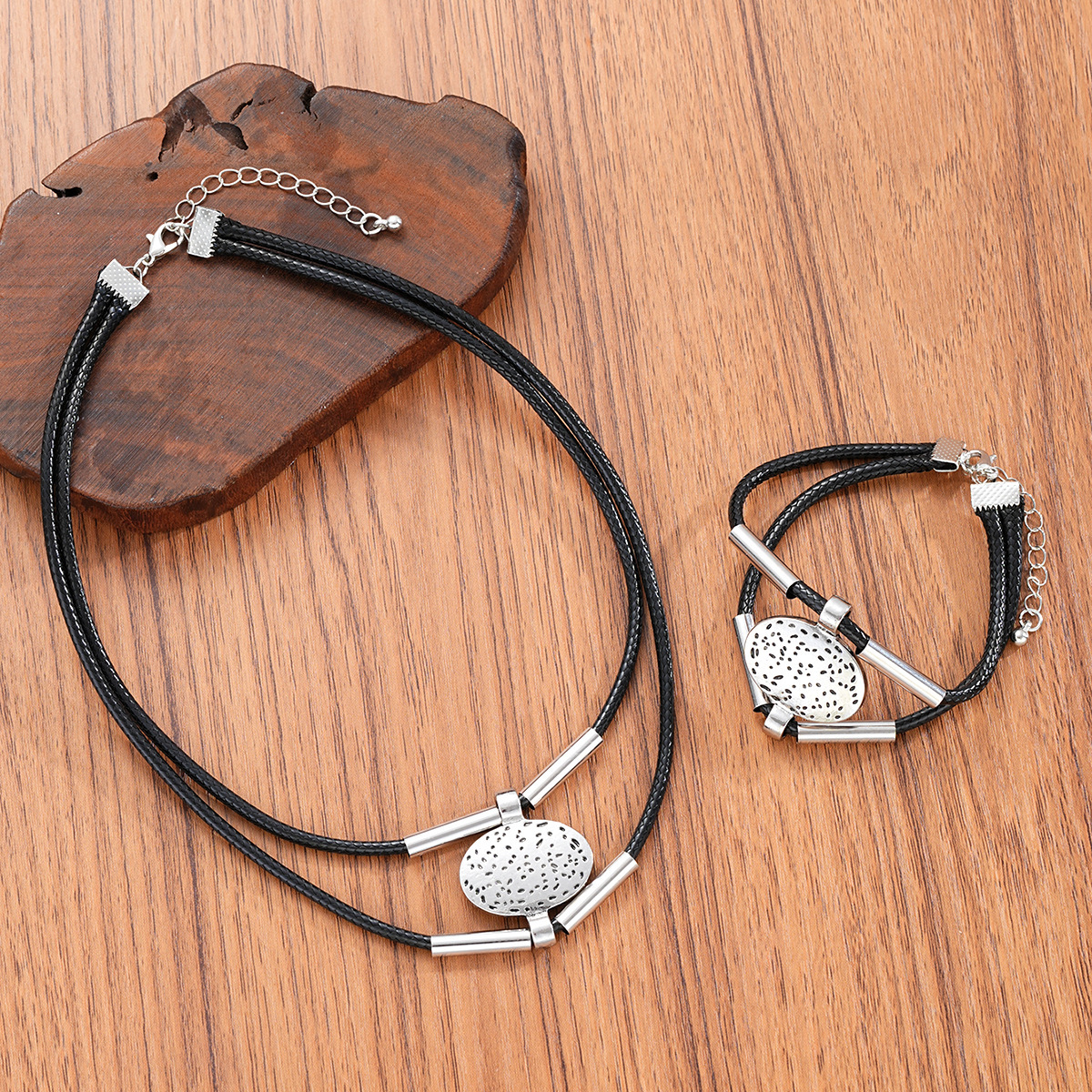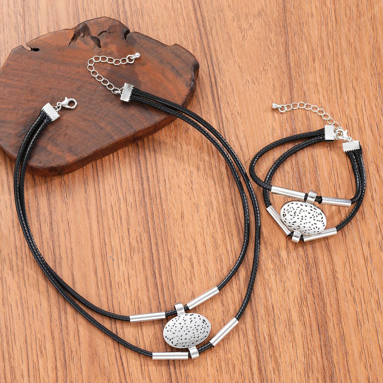 Bohemian Retro Style silver Oval Pendant Necklace Bracelet suit Creative All-match Women's Jewelry suit