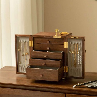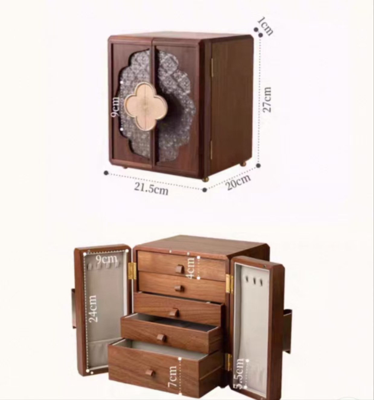 Vintage Wooden Jewelry Box Storage Box Jewelry Guofeng Jewelry New Chinese Style Multi-Layer Necklace Jewelry Box