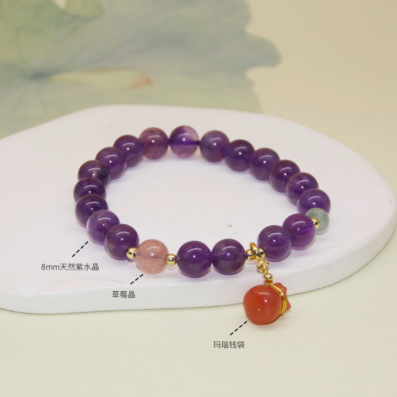 Color: 4mm amethyst with strawberry crystal